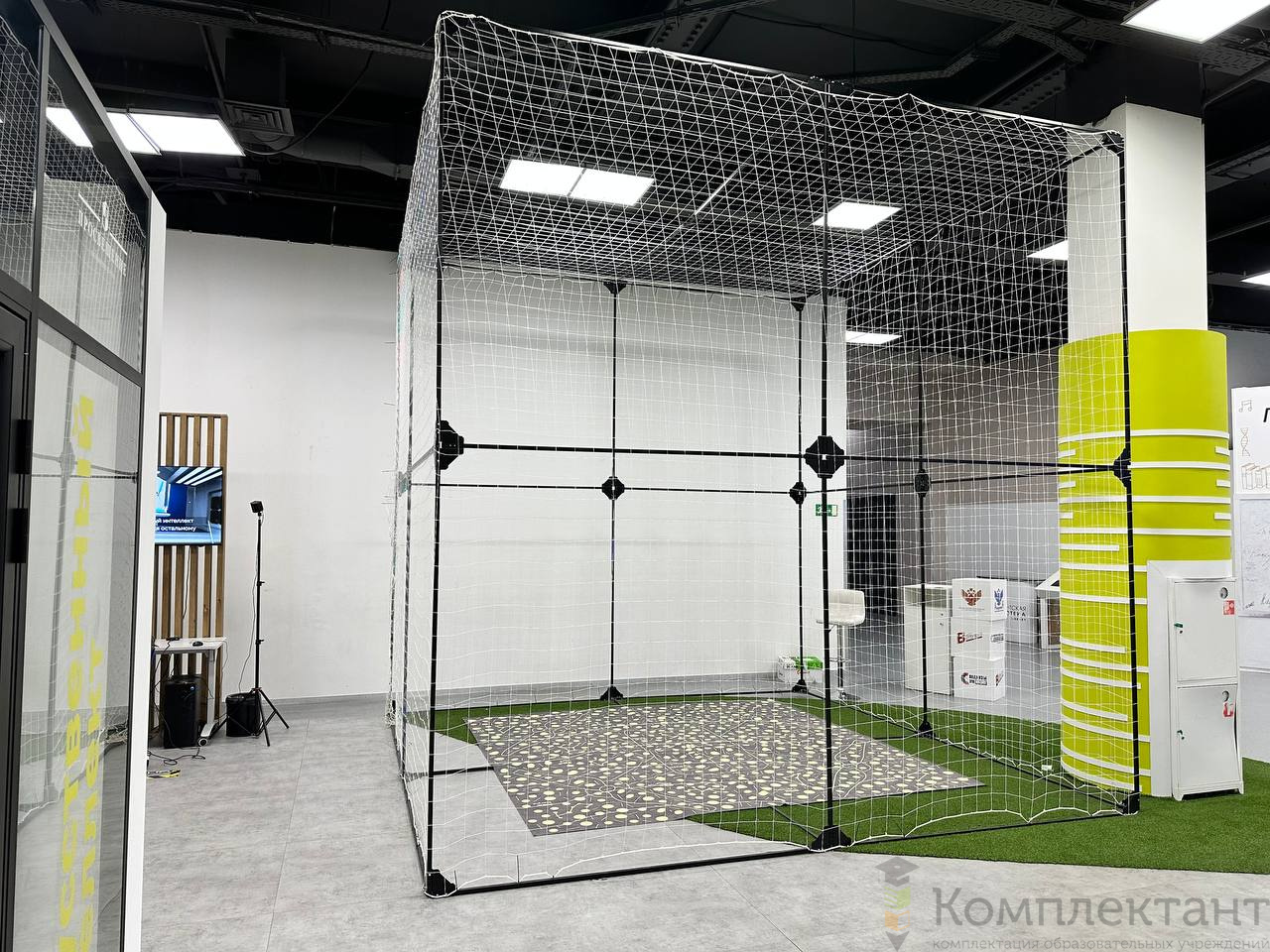 Оборудованная зона для полётов – куб для полётов 3х3х3м с демпфирующим покрытием
