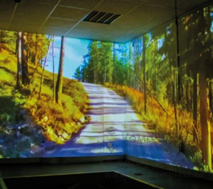 Это проекция панорамного статичного или динамичного изображения со звуковым сопровождением на 2 стены, создающая тематическую атмосферу и эффект полного погружения.