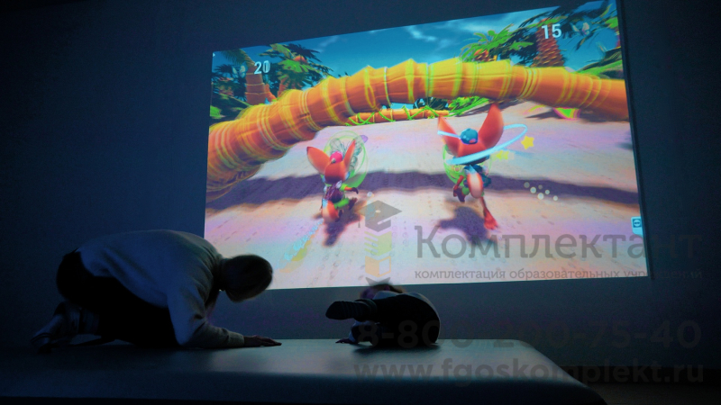 Интерактивный батут "Jumper" - это увлекательный аттракцион, который не позволит детям скучать и спокойно стоять на одном месте. На стену проецируется динамичное изображение, а игроки должны управлять персонажами: прыгать, замирать на месте или приседать, чтобы уворачиваться от препятствий.