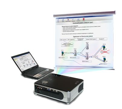 Комплекс оборудования для демонстрации дидактического материала в кабинете до 35 человек. Состав: проектор, экран (150х150 см), ноутбук, дидактическое ПО по курсам: