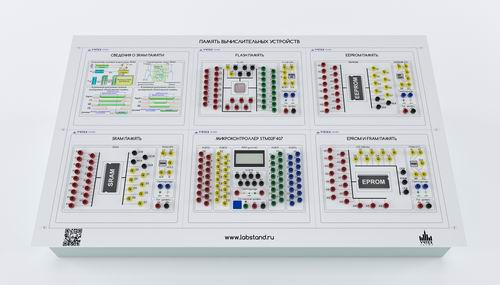 Стенд предназначен для проведения лабораторно-практических работ для студентов высших, средних и профессионально-технических учебных заведений с целью получения знаний, опыта и навыков работы с различными типами памяти (запоминающих устройств). После выполнения лабораторно-практических работ обучаемый получит знания в работе с различными видами памяти, такими как SRAM, SDRAM, EEPROM, FLASH, EPROM. Также во время изучения различных видов памяти обучаемый повышает свои навыки в работе с различными интерфейсами, как параллельными, так и последовательными, например SPI, I2C. Стенд также позволяет повысить опыт в программировании микроконтроллеров, пополнить знания в языках программирования C, C++ и Assembler.