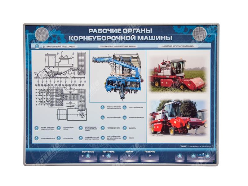 Интерактивный стенд предназначен для получения знаний о рабочих органах корнеуборочной машины.