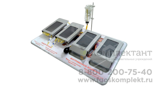 Тренажер представляет собой полноцветную панель с установленными на ней четырьмя имитаторами участков кожи и подкожного слоя. Предназначен для отработки навыков двух видов медицинских процедур: внутривенных инъекций и забора крови в разных условиях доступности сосудов.