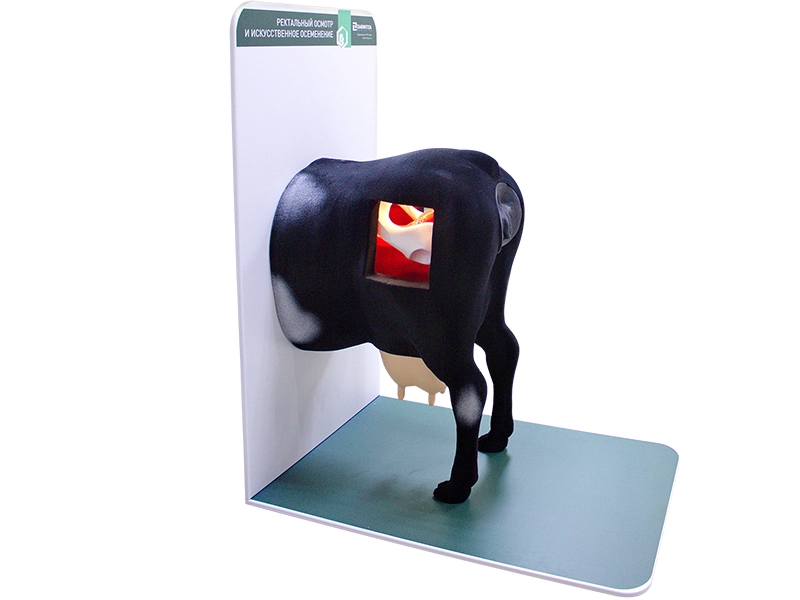 Тренажерный комплекс предназначен для отработки навыков ректального осмотра и искусственного осеменения.