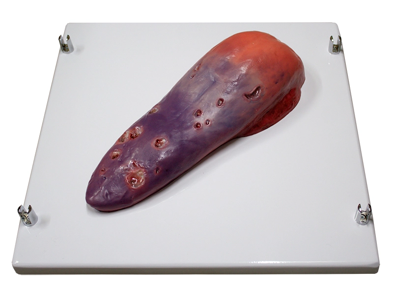 Макет "Актиномикоз языка КРС" представляет собой точный муляж органа животного c изменениями и патологиями при актиномикозе языка крупного рогатого скота, установленный на декоративном основании с защитным прозрачным колпаком, предназначенным для защиты от пыли и механических повреждений.
