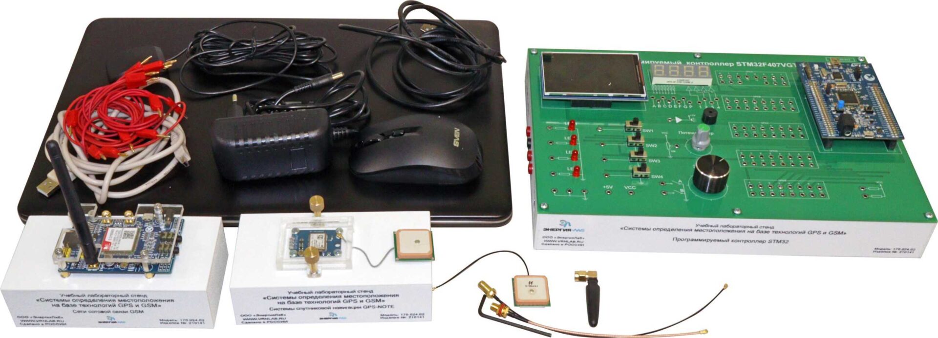Учебный стенд предназначен для изучения систем определения место-положения на базе технологий GPS и GSM, а также возможностей 32-разрядных микроконтроллеров STM, использования микроконтроллеров в построении информационных систем, организации взаимодействия нескольких устройств между собой, использования передачи и отображения информации в компьютерных системах.