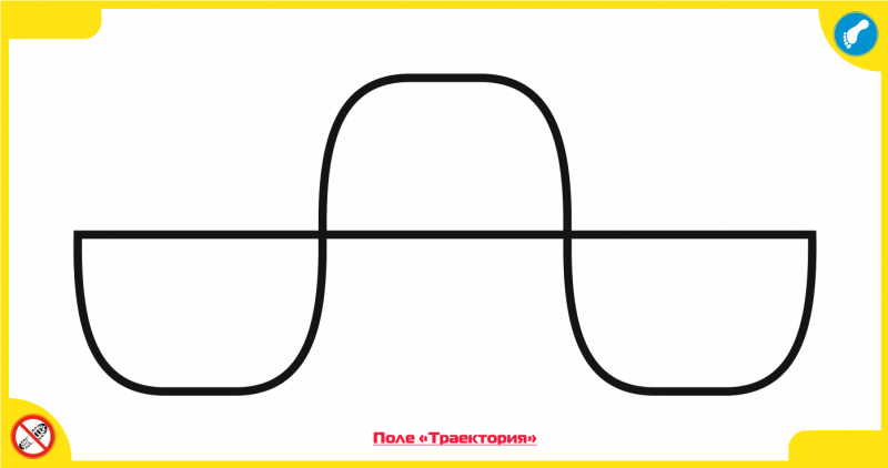Белое поле размером 2100 х1100 мм с нанечеными черными линиями, изображающими сложную траекторию движения, по которой двигаются роботы во время тренировки или соревнования. Поле предназначено для опытных робототехников.