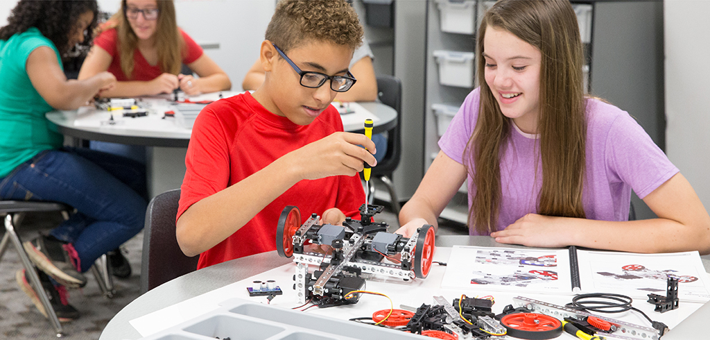 В наборе есть всё, что группе из четырёх учащихся потребуется для создания программируемых роботов с использованием контроллера для робототехнических моделей серии PRIZM™.