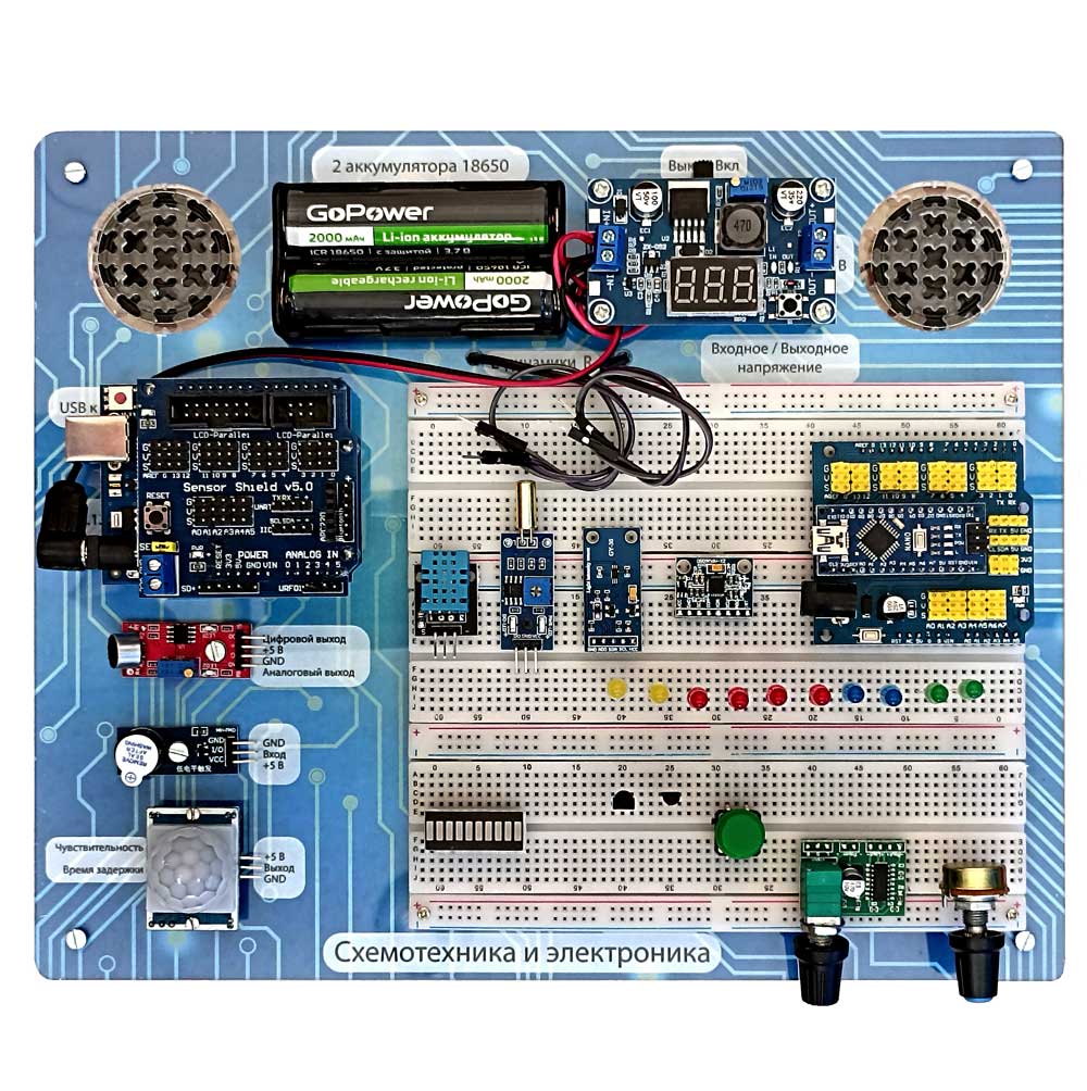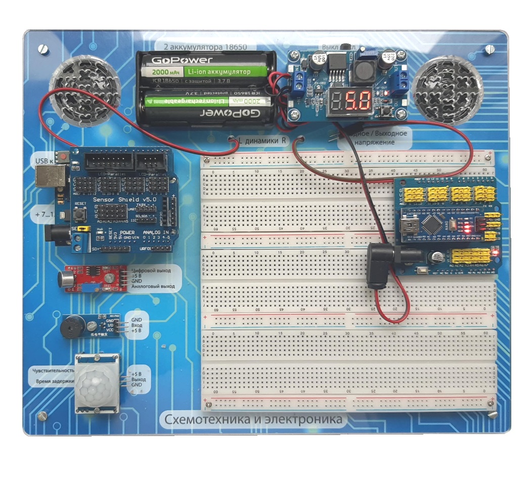 Общеобразовательный конструктор для практического изучения принципов создания электронных устройств на основе электронных компонентов и программируемых контроллеров.
