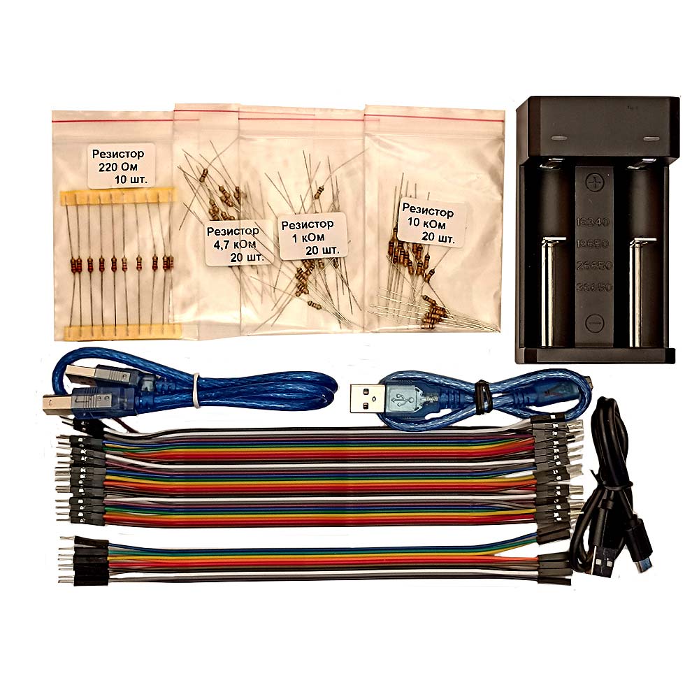 Данный набор электронных модулей, предназначен для изучения аналоговой и цифровой электроники на начальном уровне, проектирования простых электронных устройств и программирования на языках Scratch, C++. Укомплектован книгой на 77 учебных проектов по изучению программирования микроконтроллеров Arduino.