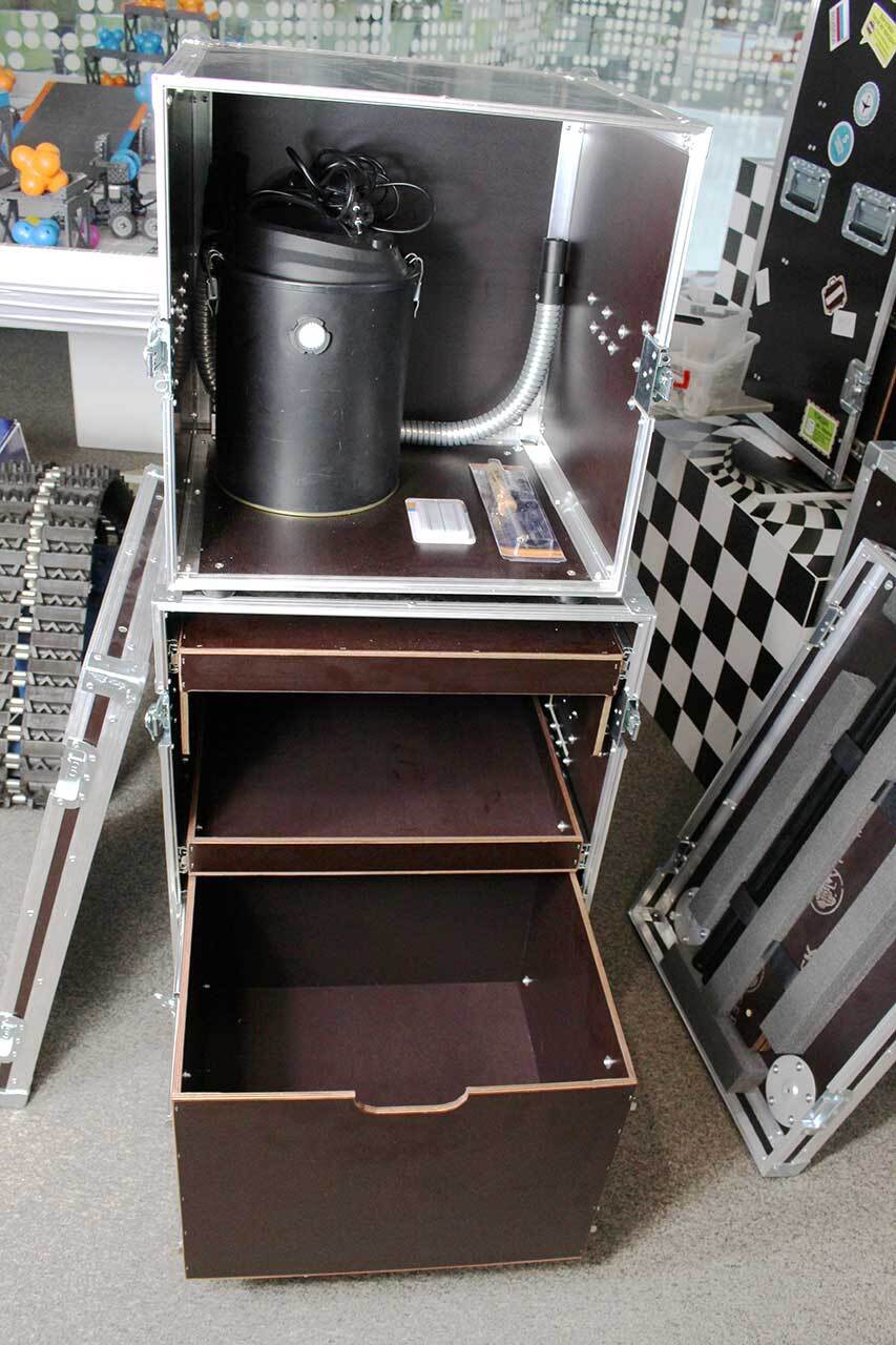 В составе мобильной лаборатории все необходимое для 30 школьников, реализующих различные технические задания и проекты. В набора входит более 300 часов учебно-методических материалов и комплексов, а также сценариев мероприятий, способных обеспечить необходимое вовлечение и интерес любой аудитории к изучаемым компетенциям и выполняемым работам как на 1-2 часа, так и до 30 часов реальной проф. подготовки. «УДИВИ!» позволит расширить возможности профориентационных классов и детских центров или организовать собственный бизнес с нуля. Вы сможете проводить обучение и мероприятия в своем регионе, имея большой поток заказов и стабильный доход. Срок окупаемости 2-3 месяца. Сам чемодан представляет собой кофр-трансформер из ламинированной фанеры и металла, на платформе с колёсами. Внутреннее пространство разделено на 4 отсека для удобства тематического распределения материалов и оборудования. На время работы с оборудованием и станками кофр может трансформироваться в рабочую зону (стол) с вытяжной системой. Состав компетенций (оборудования) может быть скорректирован под потребности заказчика.Компетенции базового состава «Чемодана УДИВИ!»:
