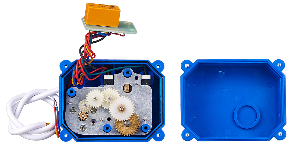 За поворот хромированной шаровой заслонки отвечает моторный блок. Он расcчитан на работу с напряжением 12 Вольт и имеет встроенные концевые выключатели.