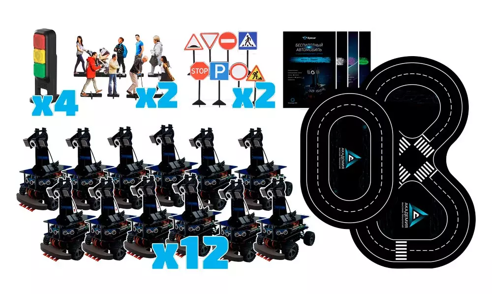 1. Изучать решение классических задач мобильной робототехники в рамках дополнительного образования или проектной деятельности. Оборудование поставляется в комплекте с методическими пособиями. В ходе занятий учащиеся освоят программирование мобильного робота на базе контроллера Arduino и классической сенсорной периферии: инфракрасных датчиков линии и ультразвуковых датчиков дистанции. 2. Изучать решение сложных задач мобильной робототехники в рамках дополнительного образования или проектной деятельности. Оборудование поставляется в комплекте с методическими пособиями. В ходе занятий учащиеся освоят программирование мобильного робота на базе одноплатного компьютера Raspberry Pi и сенсорной периферии, включающей широкоугольную камеру. Наличие камеры дает возможность изучать основы компьютерного зрения в робототехнике. Создаваемый мобильный робот получает способность детектировать, распознавать и реагировать на реальные объекты: светофоры, пешеходов, дорожные знаки и другие объекты городской среды. А самое главное - робомобиль превращается в настоящий беспилотный автомобиль благодаря способности ездить по своей полосе дорожного полотна, а не по белой линии. 3. Заниматься высокоуровневым программированием и изучать современные цифровые инструменты - компьютерное зрение, нейронные сети, машинное обучение и основы искусственного интеллекта - в ходе решения задач беспилотных автомобилей по детектированию и распознаванию реальных объектов городской среды. 4. Заниматься проектной деятельностью с применением наиболее современных цифровых инструментов. В комплект поставки оборудования входит серия онлайн-курсов для учащихся и их наставников по освоению работы с современными цифровыми инструментами и применению полученных навыков в собственных проектах, которые могут быть никак не связаны с тематикой беспилотных автомобилей. 5. Проводить занятия в формате онлайн. Оборудование имеет интерфейсы удаленного управления, что позволяет учащимся подключаться к беспилотным автомобилям АЙКАР из дома и не прерывать образовательный процесс ввиду внезапной невозможности посещать образовательную организацию. Доступ на онлайн-платформу позволяет отлаживать программный код без подключения к оборудованию. 6. Проводить собственные образовательные соревнования и хакатоны как по классической робототехнике, так и по высокоуровневому программированию. В комплект поставки оборудования входят методические пособия по проведению мероприятий. 7. Проводить собственные образовательные соревнования и хакатоны по высокоуровневому программированию онлайн. В комплект поставки оборудования входит доступ на онлайн-платформу, которая позволяет проводить собственные соревнования и приглашать туда ведущих программистов города и даже региона. 8. Готовиться к ведущим всероссийским и международным инженерным соревнованиям и турнирам по робототехнике, таким как:В набор входит: