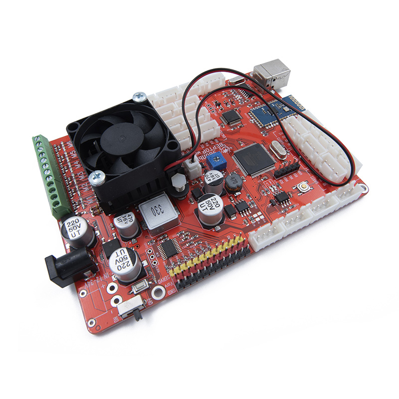 - bluetooth модулем, подключенным к выводам управляющего микроконтроллера и позволяющим как загружать скетчи в контроллер через bluetooth соединение, так и выполнять дистанционное управление контроллером с помощью мобильного приложения.