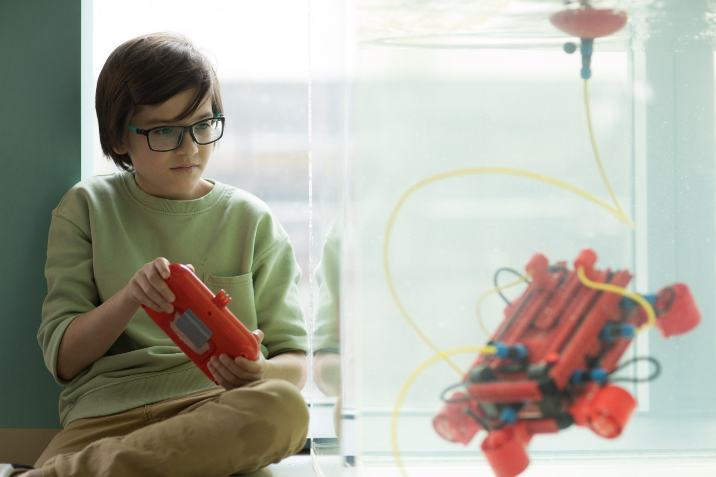 Конструктор для сборки телеуправляемого подводного робота Океаника «Кит», способного работать как в пресной, так и в соленой воде.