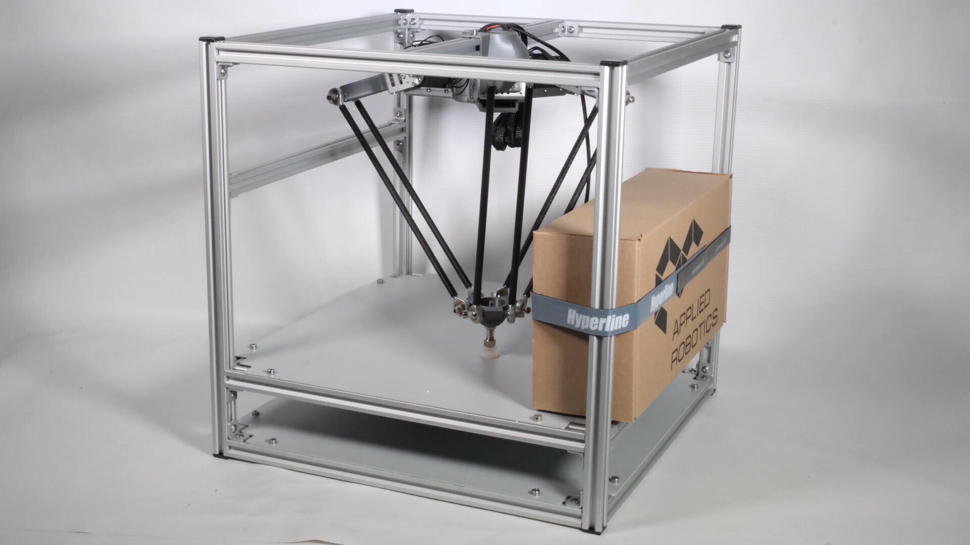 На изображении представлен пример производственной ячейки, выполненной из нескольких автоматизированных линий и манипулятора с "Delta"-кинематикой.