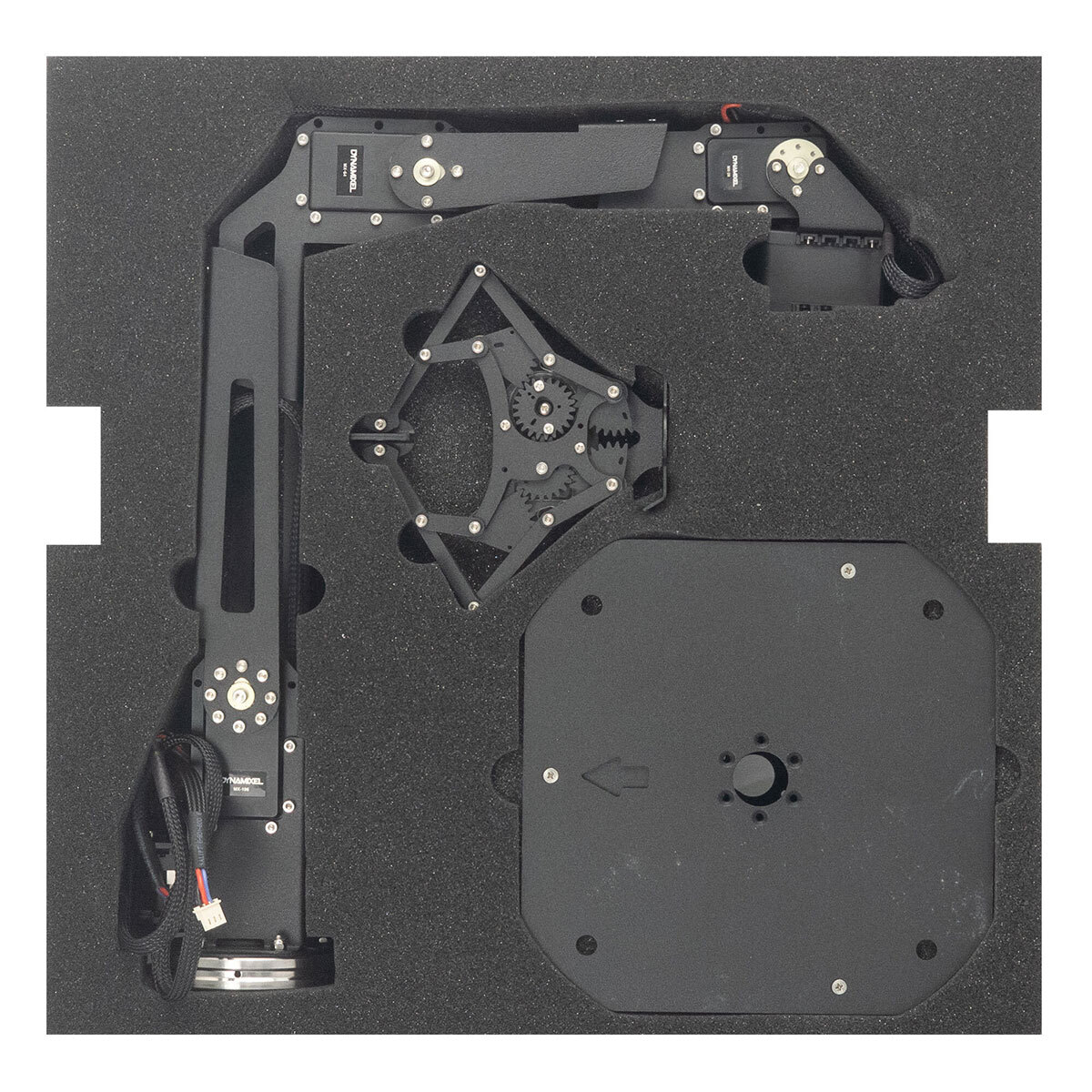 Применение РТК в образовательном процессе позволяет познакомить учащихся с принципами проектирования и конструирования манипуляционных роботов, алгоритмами управления манипуляционными роботами, основам разработки управляющего ПО, а также базовым принципам построения архитектур систем управления гибких производственных ячеек. Учебно-лабораторный РТК реализован на основе комплектующих, применяемых в профессиональных сферах робототехники и представляет собой блочно-модульный конструктор для разработки макетов гибких производственных линий. Благодаря этому, учащиеся могут на практике изучать основные принципы проектирования промышленных робототехнических комплексов и их систем управления, а также разрабатывать собственные проекты различных робототехнических систем промышленного назначения. Модуль технического зрения, представляющий собой вычислительное устройство со встроенным микроконтроллером, интегрированной телекамерой и оптической системой. Модуль позволяет одновременно обнаружить в секторе его обзора до 10 различных объектов, а также до 5 различных комбинированных объектов, состоящих из комбинации трех различных объектов, произвольно расположенных относительно друг друга. Модуль технического зрения обладает возможностью коммуникации с аналогичными модулями технического зрения, а также с сервомодулями Dynamixel, посредством шины на базе последовательного интерфейса с целью дальнейшей передачи результатов измерений группы модулей на управляющее вычислительное устройство, подключенное к данной шине. Выполнение всех измерений и вычислений в модуле происходит посредством собственных вычислительных возможностей встроенного микроконтроллера. В состав комплектов входит проектная документация с примерами проектирования и конструирования различных моделей промышленных роботов и библиотеки трехмерных моделей комплектующих для проектирования и прототипирования. Благодаря этому, учебно-лабораторные комплекты для разработки РТК могут применяться в задачах проектирования и конструирования робототехнических комплексов, а также при прототипировании макетов опытно-конструкторских и коммерческих проектов. Программирование учебно-лабораторных РТК может осуществляться в блочно-модульной среде программирования для начинающих разработчиков, в эмуляторе промышленной среды программирования для специалистов в области промышленной автоматизации, среде LabView, а также в среде ROS и редакторе скриптов языка Python для разработчиков алгоритмов управления. Данная линейка оборудования является основой для разработки макета автоматизированной "умной" фабрики в рамках подготовки к соревнованиям по регламентам WS. Манипуляторы с угловым типом кинематической схемы могут применяться для свободного перемещения рабочего инструмента в пространстве в рамках сферической рабочей зоны относительно системы координат основания. В большинстве случаев подобные манипуляторы применяются для выполнения задач по перемещению и точному позиционированию объектов, обработки пространственных контуров и поверхностей. Данный тип кинематики является наиболее распространенным в промышленности в области машиностроения и механической обработки, сварочных и покрасочных работ.Технические особенности:
