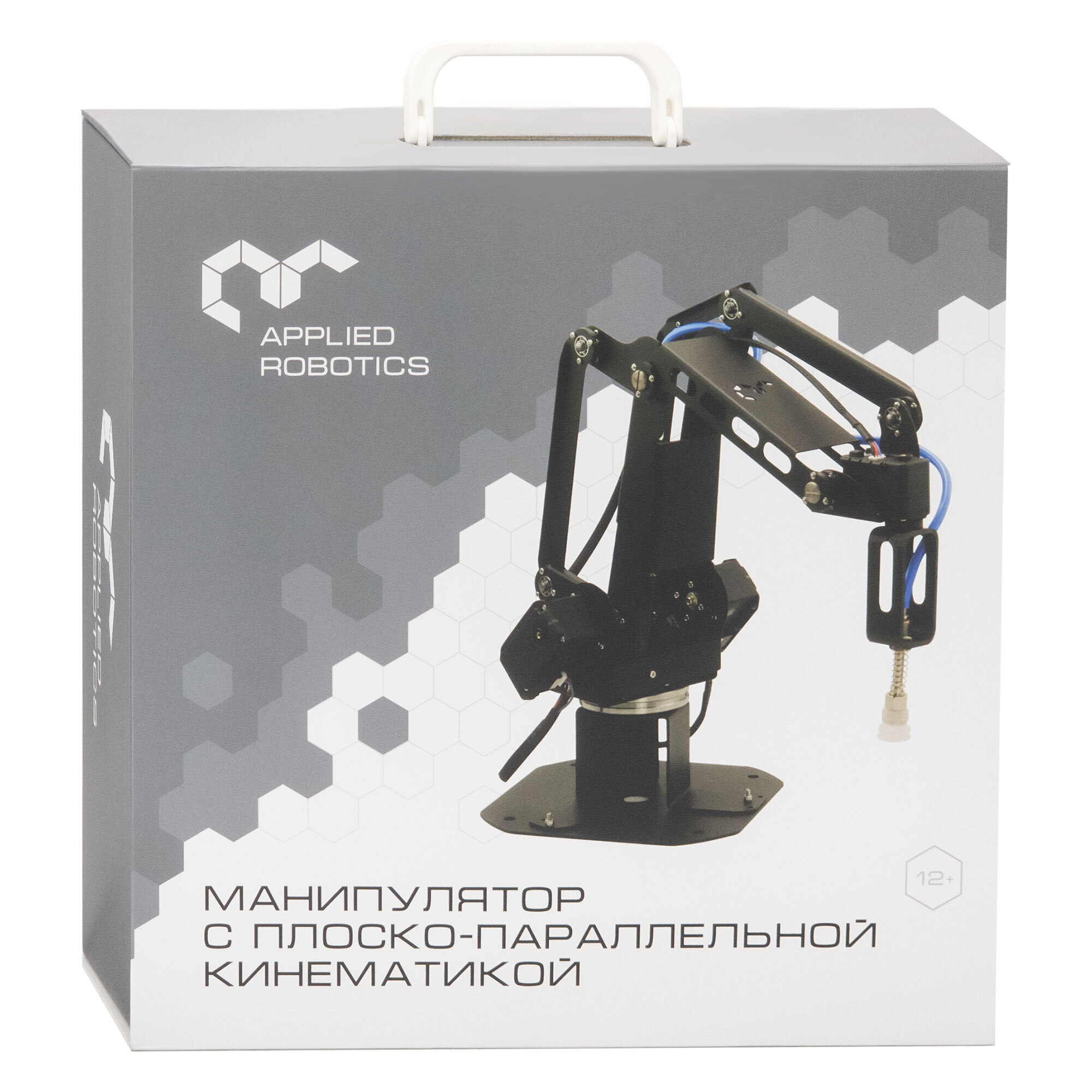 Учебный манипулятор реализован на основе интеллектуальных сервомодулей Dynamixel и специализированной системы управления. Благодаря применению высококачественных сервомодулей Dynamixel, применяемых в профессиональной деятельности в сфере робототехники, учебный манипулятор обладает повышенной точностью и повторяемостью позиционирования исполнительного органа (схвата) по сравнению с какими-либо другими учебными моделями. Наличие встроенной системы управления сервомодулей Dynamixel и множества обратных связей обеспечивает возможность гибкой настройки и управления манипулятором в процессе его работы. Учебный манипулятор обладает встроенным программным обеспечением для коммуникации с облачным сервером РТС ThingWorx, применяемым для разработки приложений на основе технологий «Интернет вещей». Встроенная система управления учебного манипулятора обеспечивает возможность объединения аналогичных учебных моделей в единую информационную систему для управления группой роботов в рамках решения учебной технологической задачи. Манипуляторы с плоско-параллельным типом кинематической схемы могут применяться для перемещения рабочего инструмента параллельно горизонтальной плоскости в цилиндрической системе координат относительно основания. Важным преимуществом данной кинематики является повышенная грузоподъемность на схвате за счет облегчения конструкции манипулятора ближе к схвату за счет расположения приводов в основании. В большинстве случаев подобные манипуляторы применяются для выполнения задач по перемещению грузов большой массы в машиностроении или логистике. Учебный манипулятор представляет собой доступную учебную модель промышленного манипуляционного робота, обеспечивающую возможность на практике изучить большинство аспектов разработки систем управления манипуляционных роботов с угловым типом кинематики, а базовых принципов применения робототехники при автоматизации технологических процессов.Технические особенности: