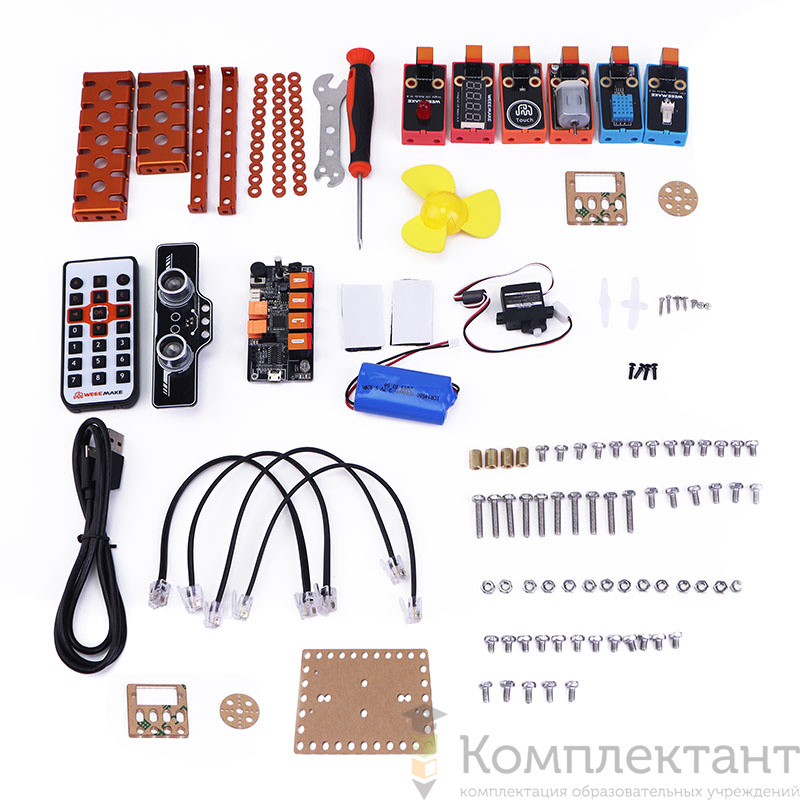 Комплект включает в себя оборудование для обучения учеников с 5 по 11 класс и содержит следующее: