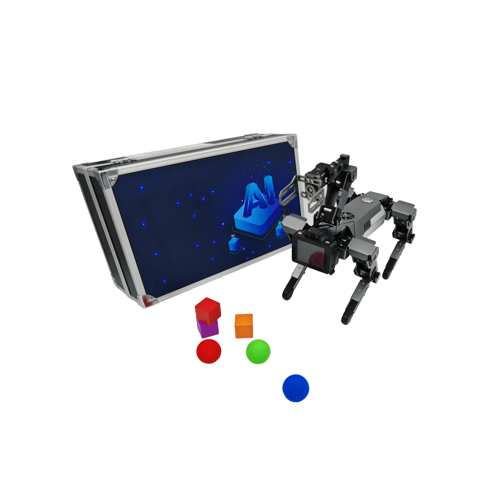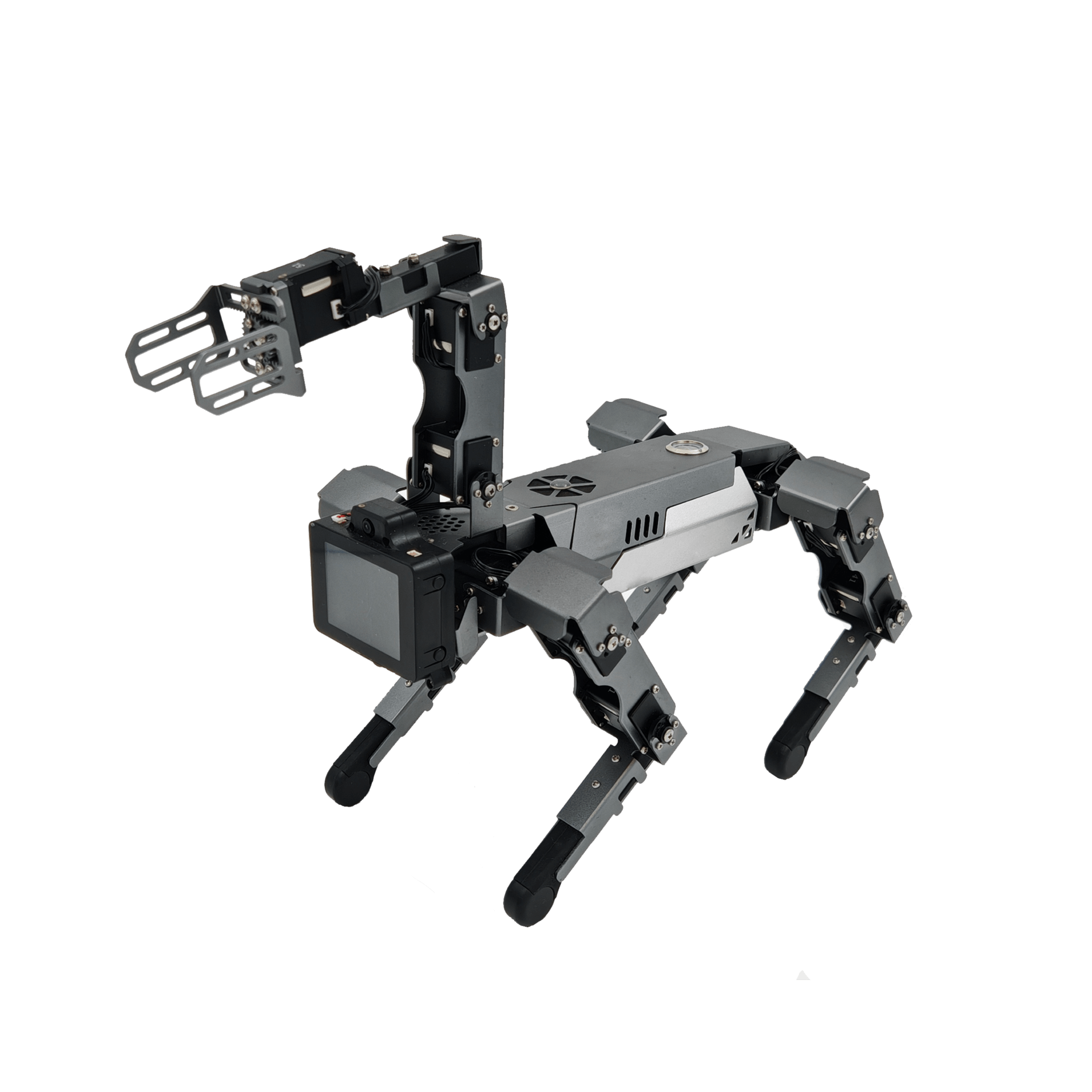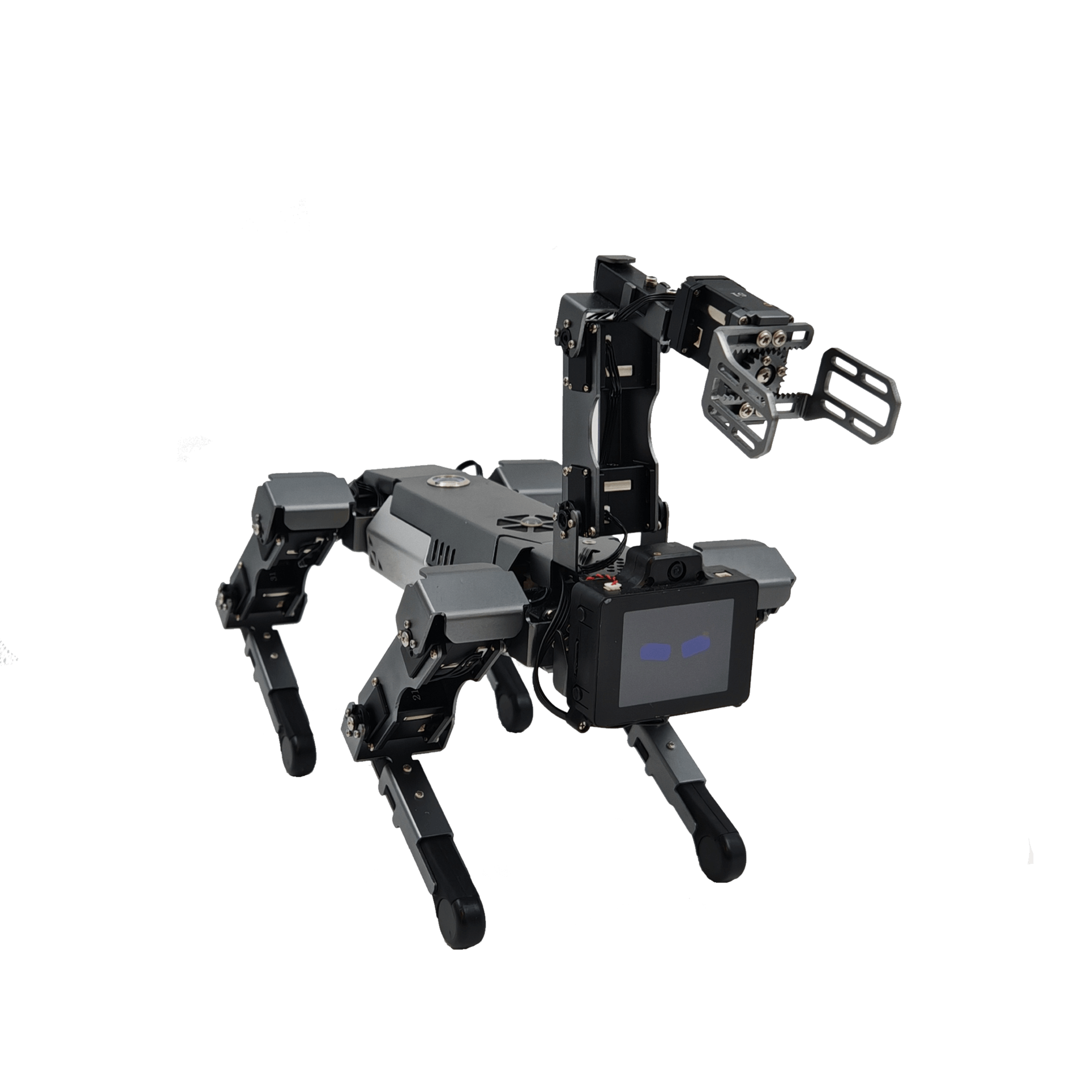 Робособака - это учебный настольный робот в корпусе из алюминия. Он имеет 12 серво моторов для реализации двигательных функций и 3 для захвата и перемещения предметов. На фронтальной части корпуса расположен 2,0-дюймовый ЖК дисплей разрешением 320x240 и встроенной камерой 2 мегапикселя. Также на корпусе находятся кнопка включения/выключения и интерфейсы для зарядного устройства и периферии. Основой для выполнения периферийных вычислительных приложений является контроллер Raspberry CM 4. Программирование робособаки осуществляется с помощью языков программирования Blocky и Python через специальное приложение в браузере компьютера. Модуль искусственного интеллекта предоставляет множество аппаратных функций, включая встроенный микрофон, динамик и камеру достаточную для обработки изображений и функций визуального распознавания. Робот имеет интерактивные кнопки для легкого программирования, а предустановленные модели ИИ обеспечивают распознавание жестов, лиц, эмоций, пола и возраста. Это позволяет роботу взаимодействовать с окружающей средой интеллектуальным и динамичным образом и обеспечивает простоту разработки приложений для реализации технологий искусственного интеллекта.