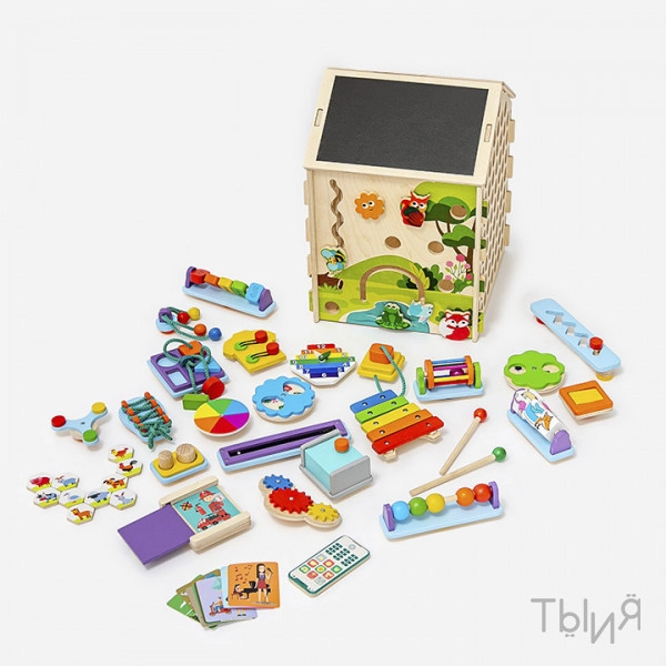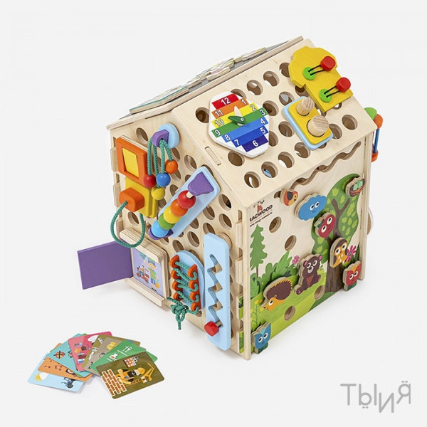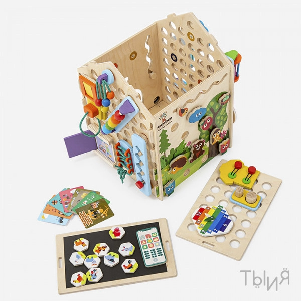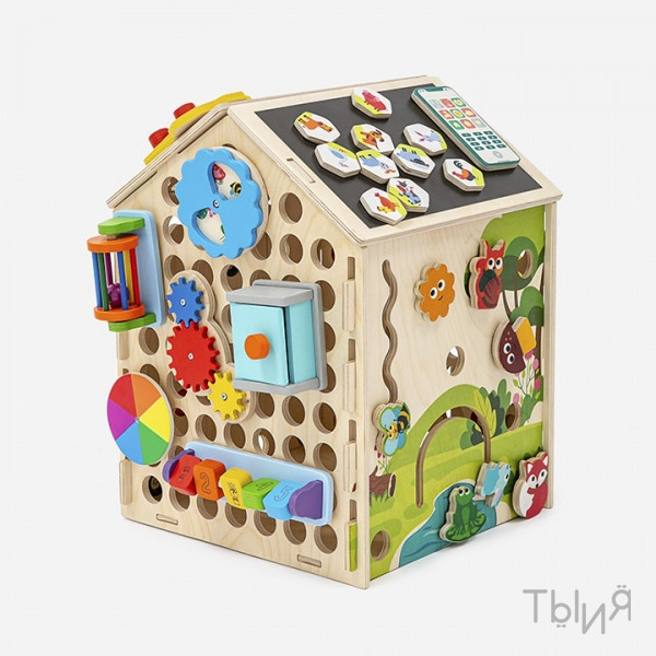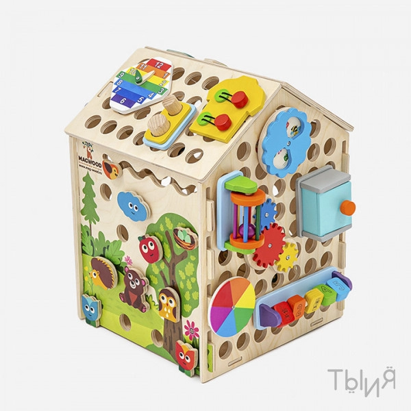 Бизидом способствует развитию мелкой моторики благодаря съемным элементам. В игровой форме ребёнок выучит цвета, формы и размеры, познакомится с лесными зверятами, птицами, природными явлениями и погодой. Также малыш научится считать, рисовать мелом на магнитной доске и узнает о работе различных механизмов, развивая фантазию и создавая собственные сюжетно-ролевые игры.