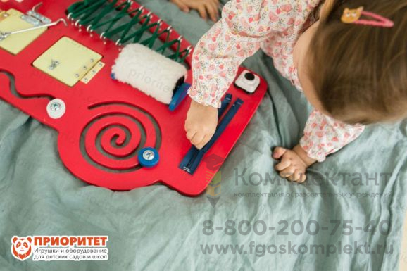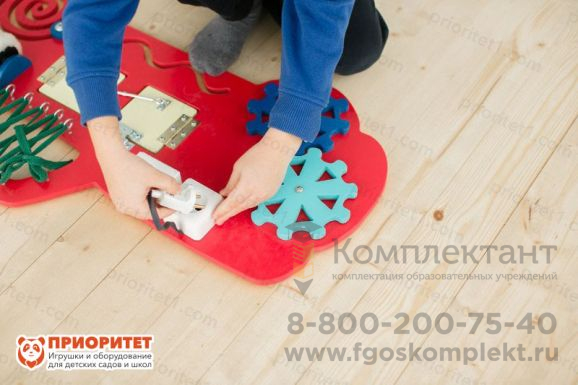 Бизиборд выполнен в виде заводной красной машинки. Играя на такой машинке, не замечаешь, как быстро и весело проходит время. Дети не только физически и умственно развиваются, но и учатся самостоятельности в домашних делах. На панели расположены элементы, часто привлекающие детское внимание. Главный плюс – эффективное развитие и безопасное удовлетворение детского любопытства. Бизиборд предназначен для проведения развивающих игр в дошкольных образовательных учреждениях, коррекционных центрах и т.д.