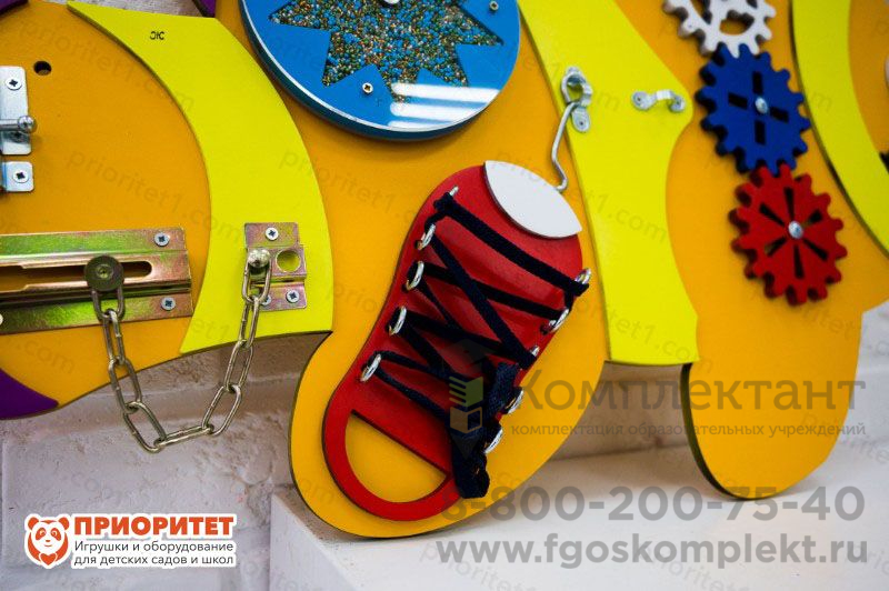 Бизиборд выполнен в виде оранжевой рыбки, которая стала героем популярного мультфильма. Вместе с забавной рыбкой дети научатся ловко решать задачи и смогут похвастаться своими возросшими навыками. Малыши не только физически и умственно развиваются, но и учатся самостоятельности в домашних делах. На панели расположены элементы, часто привлекающие детское внимание. Главный плюс – эффективное развитие и безопасное удовлетворение детского любопытства. Бизиборд предназначен для проведения развивающих игр в дошкольных образовательных учреждениях, коррекционных центрах и т.д.