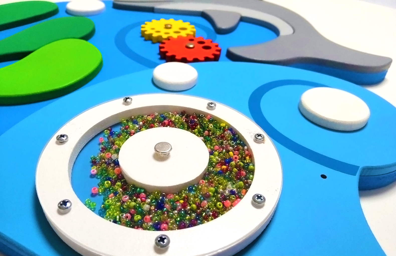 Совместное пользование комплекта бизибордов поможет детям в развитии коммуникативных навыков.