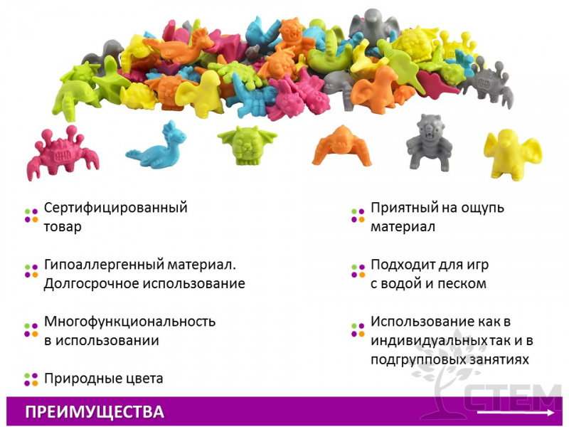 - 72 фигурки в виде Монстров, 6-ти природных цветов.