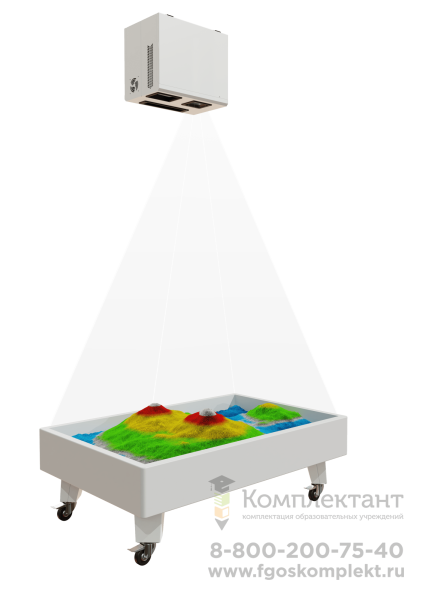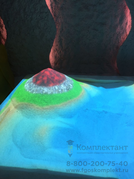 Благодаря технологиям дополненной реальности песочница способна «оживить» песок: на поле проецируются не просто цвета, а графические динамичные изображения реальных природных объектов и явлений. Можно формировать рельефы, делать горы, насыпи, запускать вулканы, выкапывать озера-моря-океаны, прокладывать реки и многое другое!