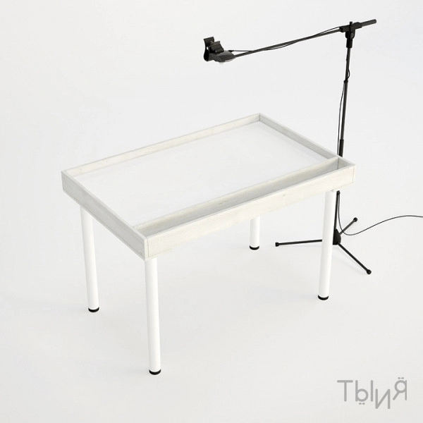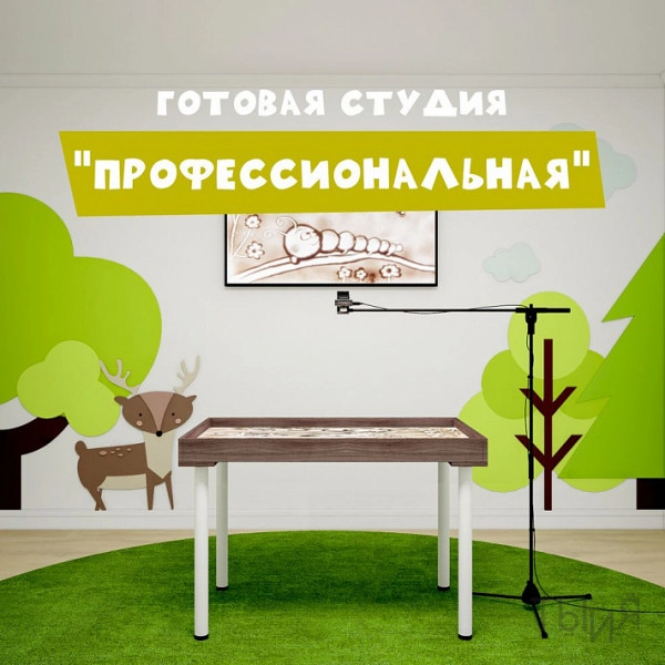 Готовая студия рисования песком «Профессиональная» состоит из удобного портативного столика, мощной веб-камеры с функцией онлайн-фото и стриминга, а также переносного штатива, что делает ее идеальной для оснащения любого детского учреждения анимацией и песочной терапией.
