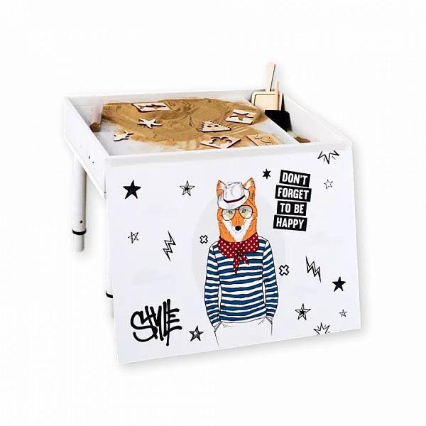 – в комплекте набор инструментов (совочек и щёточка, набор трафаретов, песочный карандаш);