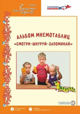 Альбом мнемотаблиц \"Смотри - Шнуруй - Запоминай\": методическое пособие. В альбоме объединились две технологии: «Мнемотехника» и «Сказочные лабиринты игры» В. В. Воскобовича. Связующим звеном данных технологий стали авторские развивающие игры «Шнур — Малыш» и «Шнур — Затейник». В альбом вошли лучшие работы детей и их взрослых помощников, присланные на Всероссийский детский творческий конкурс «”Шнур — Малыш” и “Шнур — Затейник”» компании «Развивающие игры Воскобовича» в 2020 году. Уникальность альбома состоит в возможности использовать манипуляции с играми «Шнур — Малыш», «Шнур — Затейник» для активизации процессов запоминания и последующего вос- произведения стихотворных и устных текстов. Схемы шнурования (квадраты, дорожки, таблицы) являются опорой, своеобразным конспектом в процессе развития связной речи. Активное вов- лечение нескольких анализаторов (зрительного, тактильного, двигательного, слухового) с при- менением приёма «шнурование», последующей зарисовкой, использованием готовых схем спо- собствует развитию всех психических процессов и речи детей.