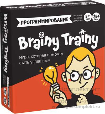 Игра-головоломка Программирование, арт. УМ268 Этому не научат в школе! Уникальная методика Brainy Trainy помогает детям развивать ключевые навыки будущего, или Soft Skills. Именно они необходимы для успеха в учебе, общении и карьере. Гибкие навыки помогут ребенку стать лидером среди сверстников и выдающимся профессионалом в будущем. Как мыслить широко и нестандартно? Как находить ответы на самые сложные вопросы? Этому научат авторские задачи на развитие интеллекта от издательства Банда умников. Программирование — область, которая охватывает целый класс востребованных высокооплачиваемых специальностей, связанных с разработкой, проектированием и тестированием сложных систем. Залог успешного изучения программирования — понимание принципов работы последовательностей, повторяющихся действий, условий и сценариев. Решение задач Brainy Trainy Программирование развивает алгоритмическое мышление, учит видеть проблемы в целом и принимать действительно эффективные решения. Игра поможет освоить навыки, необходимые для успешной деловой карьеры и конкурентоспособности на рынке труда. Что внутри? В наборе 80 карточек с заданиями. Каждой из них соответствует свой уровень сложности и основная компетенция, которую развивает данный тип заданий. На обороте карты — ответ с решением. Типы компетенций в заданиях Алгоритмы — последовательность действий для достижения цели. Циклы — анализ и поиск решений в условиях повторяющихся действий. Комбинаторика — подбор комбинаций по заданным условиям. Графы и блок-схемы — определение связей и взаимоотношений с помощью графов, составление сценариев действий с помощью блок-схем. Язык абстрактных понятий — понимание формального языка, ориентирование в массивах данных. Логика — умение находить решения для нестандартных задач. Закономерность — анализ последовательностей, системное решение задач, способность к планированию и прогнозированию. Ложь-истина — логические заключения в результате оценки фактов и причинно-следственных связей. Занимайтесь с ребенком индивидуально или устройте интеллектуальный турнир! Индивидуальный тренинг позволяет ребенку максимально сконцентрироваться на задании и дает время обдумать решение. Это базовый вариант игры, при котором мы советуем давать ребенку не больше 5 карт с заданиями, чтобы ему всегда хотелось еще. При таком варианте, хорошо выбрать несколько дней в неделю для регулярных занятий. Интеллектуальный турнир — это соревновательный вариант игры для компании любого размера. Разделите группу детей на команды из 2-5 человек и устройте мозговой баттл! В комплекте 80 карт с задачами и ответами Иллюстрированные правила