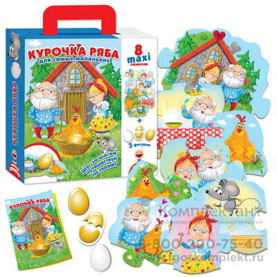 Игра настольная путешествие по сказке \"Курочка Ряба\" Уникальная идея развития памяти и внимания вашего ребенка в одной коробочке. Самый известный и эффективный способ запомнить какую-либо информацию – это ее визуализация, то есть мысленное воспроизведение ассоциаций и картинок. Поскольку словарный запас и общий кругозор ребенка пока достаточно мал, Путешествие по сказке станет отличным поводом потренироваться и расширить восприятие внешнего мира вашим малышом! В наборе собрано 8 макси-деталей в виде паззлов, которые, благодаря своим крупным размерам и высокой плотности материала с легкостью соединяются между собой, повторяя сюжетный сценарий книжечки со сказкой. А главным преимуществом игры являются 3 красочные фигурки персонажей, которые способствуют развитию навыка ролевой игры у ребенка. В каждой коробочке вас ждет маленький сюрприз – лайфхак на каждый день для современных родителей, который очень пригодится в привычных буднях с вашим ребенком. Любимая сказка \"Курочка Ряба\" в новом формате! Читай сценарий, и путешествуй шаг за шагом по сюжету. Настоящий театр в одной коробочке.