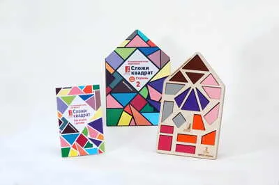 Игра Сложи квадрат Ступень 2, арт. 100-002 Новинка! Сложи квадрат - правильный формат! Сложи Квадрат Никитина - одна из самых увлекательных развивающих игр для всей семьи - игра-головоломка для развития творческого мышления. Почему правильный? Потому что самый эффективный! Именно в таком виде игра открывает весь свой мощный развивающий потенциал! Методически правильная упаковка, где фрагменты квадратов хранятся в разобранном виде! Дети не получают готовых решений, а значит могут самостоятельно совершить массу открытий! Нет ограничивающих квадрат рамок, поэтому значительно больше развиваются интеллект, фантазия, глазомер и моторика ребенка. Планшеты-домики - важная часть игры - используются и как сортер по форме и цвету, и превращают уборку в увлекательную игру. Подробные методические рекомендации от семьи Никитиных в каждом комплекте, а также карта раскладки с рекомендуемой последовательностью заданий. Картонный пенал для простого и удобного хранения - ставим игру на полку, как книгу! Это единственный из существующих на рынке вариант упаковки игры \"Сложи квадрат\", который не нарушает авторскую методику и поэтому дает максимальный развивающий эффект! Со Сложи Квадрата можно начинать знакомство детей с Развивающими играми Никитиных. Игра будет интересна и малышам 2-3 лет (1 уровень сложности), и школьникам, и подросткам, и взрослым (2-3 уровни сложности). И всё же игра наиболее эффективна для занятий с детьми дошкольного и младшего школьного возраста и развивает: логическое мышление; способность к анализу и синтезу (умение анализировать задачу и находить решение); творческие способности (умение решать нестандартные задачи); способность визуализировать цель и предвидеть результат; глазомер; умение достраивать до целого; цветовое восприятие; умение сосредотачиваться; формирует эталон формы квадрата; дает представление о геометрических формах: четырехугольник, квадрат, прямоугольник, треугольник, ромб, трапеция, параллелограмм. 2 Ступень состоит из 6 разноцветных квадратов (размер квадрата 67х67 мм), разрезанных разными способами на 3 части. Рекомендуется для детей 3-4 лет (после освоения заданий из 1 Ступени). Основная задача игры - складывание целых квадратов из одноцветных фрагментов различной формы, начиная с самых простых. В игре Сложи Квадрат, как и в других Развивающих Играх Никитиных, сложность заданий увеличивается постепенно. Этот принцип «от простого к сложному» дает детям возможность находить решения самостоятельно, без подсказки взрослого. В комплект входит подробная авторская методика-инструкция для родителей и педагогов, карта раскладки с нашими рекомендациями по последовательности выполнения заданий, а также удобный пенал для хранения игры.