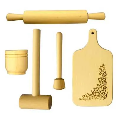 Кухонный набор большой, арт Д-011 Маленькому повару обязательно пригодится этот набор! Ведь сделан он из натурального дерева, без лака и краски, поэтому готовить на такой посуде безопасно и приятно. А размеры всех предметов как раз подойдут для детских ручек. Набор порадует и детишек, и их мам, у которых на кухне теперь появится настоящий помощник. В набор входит:разделочная доска, скалка, ступка и пестик, молоточек. Развивает самостоятельность, игровой интерес в ролевой игре. С этим набором ребенок приобретет навыки приготовления пищи. Комплектность изделия: доска кухонная - 1 шт., скалка - 1 шт., молоточек - 1 шт., ступка - 1 шт., пестик - 1 шт Размер в упаковке: 31*18*4 см Размер изделия: 21*16*5,5 см