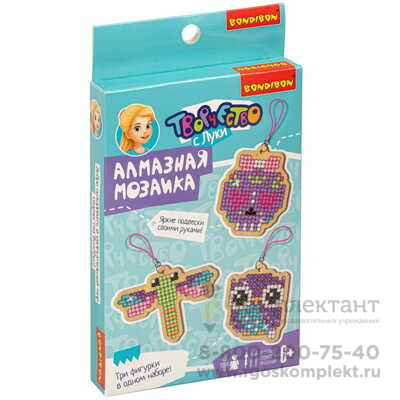 Мозаика алмазная СОВА, СТРЕКОЗА, ЧЕРЕП набор брелоков на деревянной основе Творчество c Луки , арт. ВВ4974 Алмазная мозаика - блестящий вид творчества! Красочные переливы каждого алмазика - фрагмента мозаики превращают творческий процесс в настоящее волшебство! В комплект входят: Деревянные основы брелоков с нанесенной цветосхемой и клейким слоем - 3 шт Набор мозаики и инструментов Подвески для брелоков Из набора получается 3 брелока. Возраст 6+