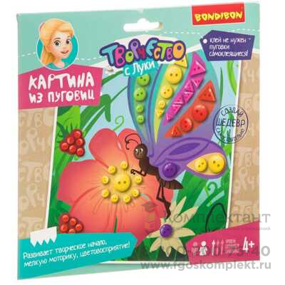 Набор для творчества КАРТИНА ИЗ ПУГОВИЦ БАБОЧКА И ЦВЕТОК для малышей Творчество с Луки , арт. ВВ3556. Bondibon (Бондибон) купить с быстрой доставкой в интернет-магазине Комплектант