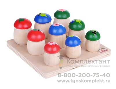 Набор Грибочки 9 шт., арт. Н-45 Игровой набор \"Грибочки\" предназначен для совсем маленьких ребят от 12 месяцев. С их помощью они в игровой форме выучат названия растений и цветов, а также улучшат свою мелкую моторику рук и логическое мышление. Грибочки разделены на три группы по двум признакам: по цвету и по типу растения. Малышам предстоит разместить их на деревянном игровом поле в три ряда, основываясь либо на их цвете, либо на типе растения, изображенном на них.