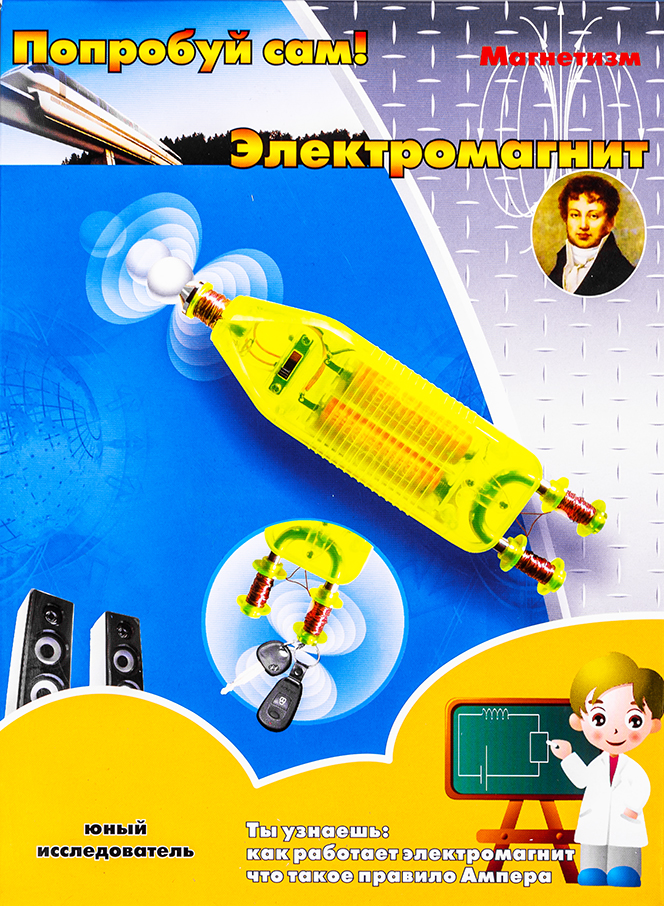 Ребенок сможет изучить основы физики, проводя эксперименты вдомашних условиях, а так же собрать собственный электромагнит.
