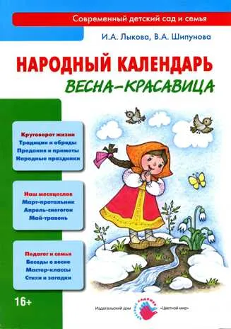 Народный календарь. Весна - красавица Книга знакомит читателей с русским народным календарем. В самобытной художественной форме раскрывает хронологию и традиционное содержание весенних праздников, обрядов и проверенных веками сезонных примет. Включает тематические беседы с детьми дошкольного и младшего школьного возраста о самых существенных явлениях и признаках весны, а также «художественное слово» – фольклор (пословицы, поговорки, частушки, заклички и др.) и современные тексты (стихи, загадки). Книга предлагает цикл мастер-классов для детского художественного творчества в технике и по мотивам народного искусства (лоскутные куклы, тестопластика, бумажный фольклор). Книга адресована воспитателям, гувернерам, учителям начальной школы, специалистам системы дополнительного образования, а также родителям, бабушкам и дедушкам.