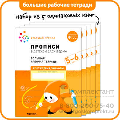 Оптовый набор Большая рабочая тетрадь. Прописи в детском саду и дома. 5-6 лет. ФГОС (5 одинаковых тетрадей тетрадей)