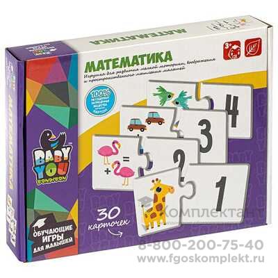 Пазл Математика, 30 шт, 2 части, арт. ВВ4820 Набор карточек-пазлов \"МАТЕМАТИКА\" Baby You Bondibon предназначен для детей от 3-х лет и поможет в изучении основ математики. Состоит из двух половинок, одна из которых показывает количество предметов при счете или пример на сложение, а другая цифру, соответствующую изображенному количеству предметов или результат решения примера. Ребенку необходимо верно собрать две половинки, правильно подобрав соответствующие карточки в 15 смысловых группах. Способствует в развитии логического мышления, внимания, речи, памяти, воображения и мелкой моторики.