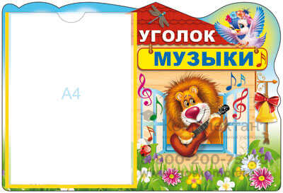 Стенд УГОЛОК МУЗЫКИ с карманом А4 Стенд УГОЛОК МУЗЫКИ предназначен для оформления группы детского сада в одном стиле. Изготовлен из качественного, плотного картона, с фигурной вырубкой и пластиковым карманом формата А4.