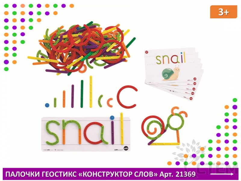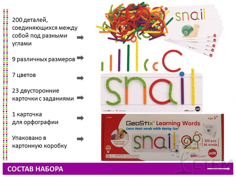 Изучите алфавит и основные слова с помощью обучающего набора GeoStix®.