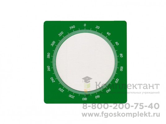 Металлический зелёный квадрат с вырезанным внутри кругом и измерительной линейкой нанесенной по кругу, с помощью которой измеряют угол. Для работы можно использовать материал из 4.45