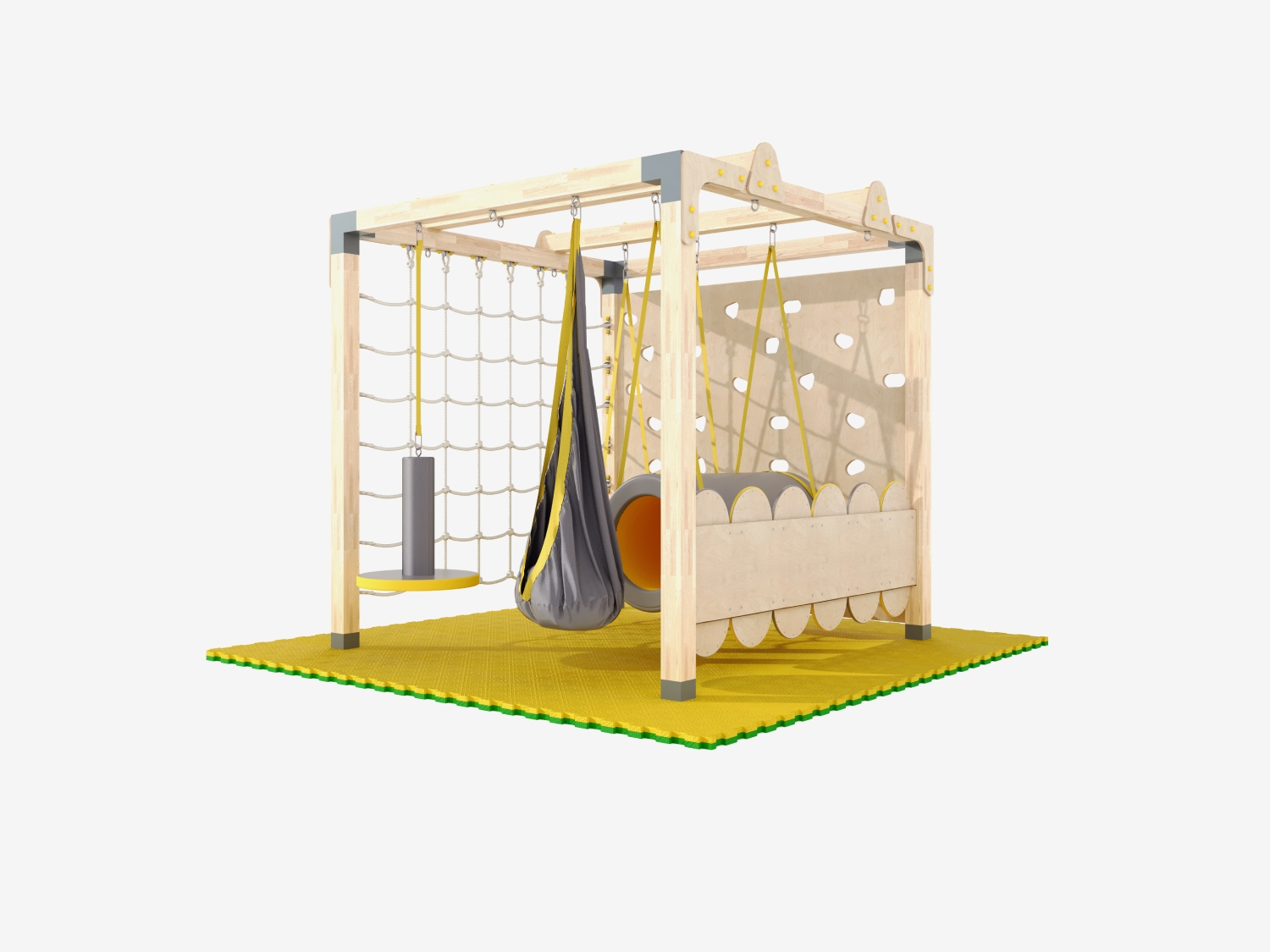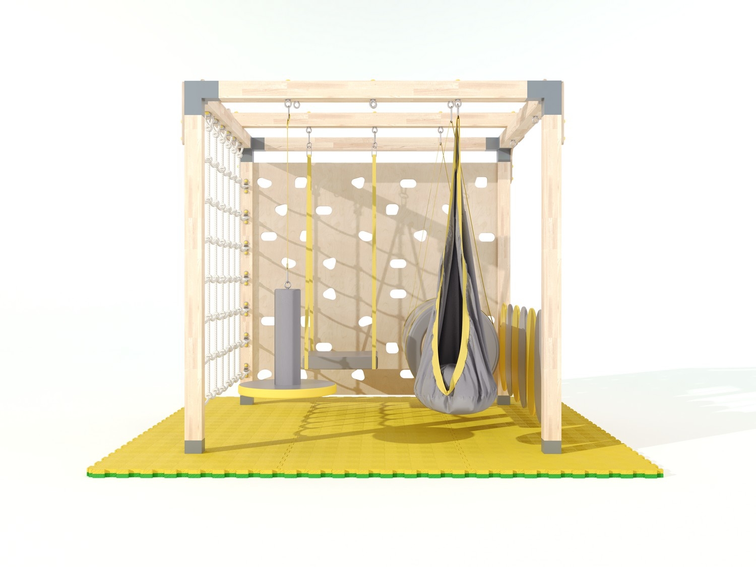 Комплект спортивного игрового оборудования для детей с нарушениями обработки сенсорной информации от органов чувств (нарушениями сенсомоторной интеграции). Занятия с комплексом помогают исправлять дисфункции проприоцептивной, вестибулярной и тактильной чувствительности у детей. Подходит как для работы коррекционных педагогов и реабилитологов, так и для общего физического развития детей.