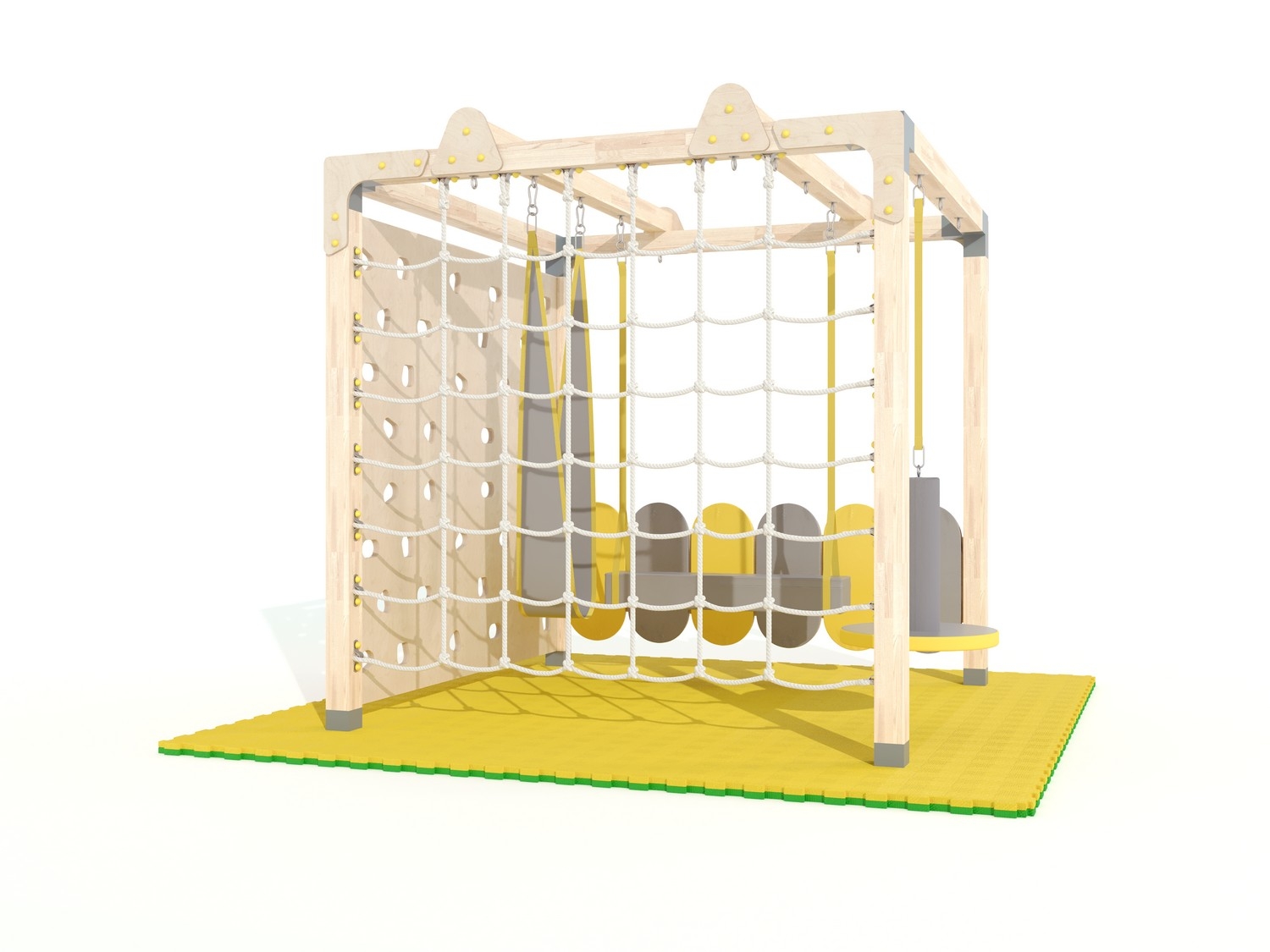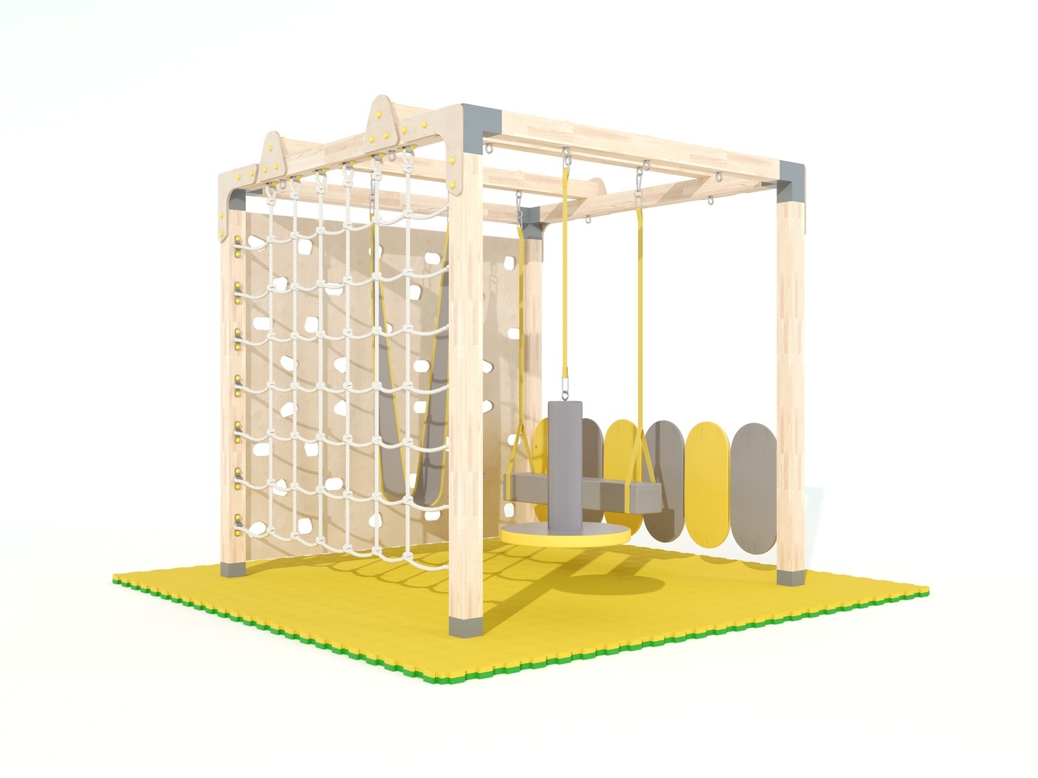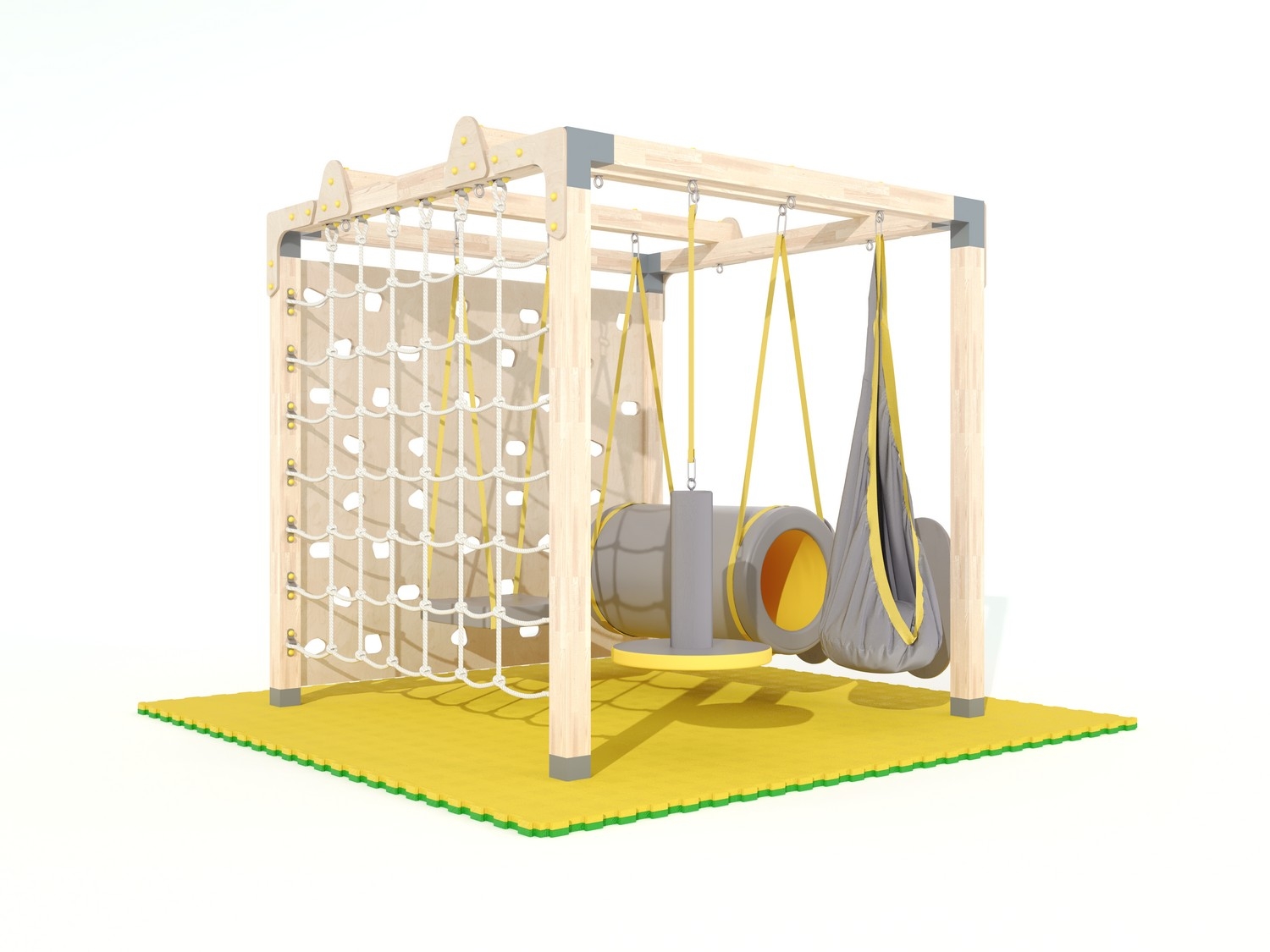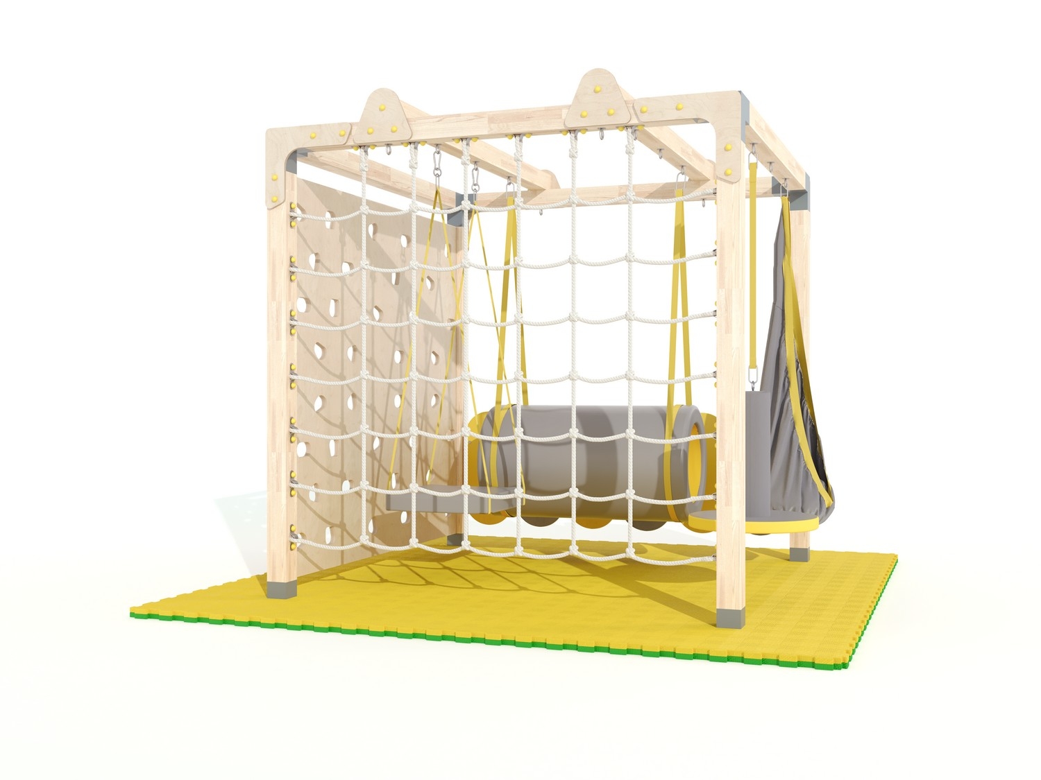 Спортивный комплекс представляет собой стационарную раму из бруса с комплектом навесного оборудования для решения разных моторных и сенсорных задач.
