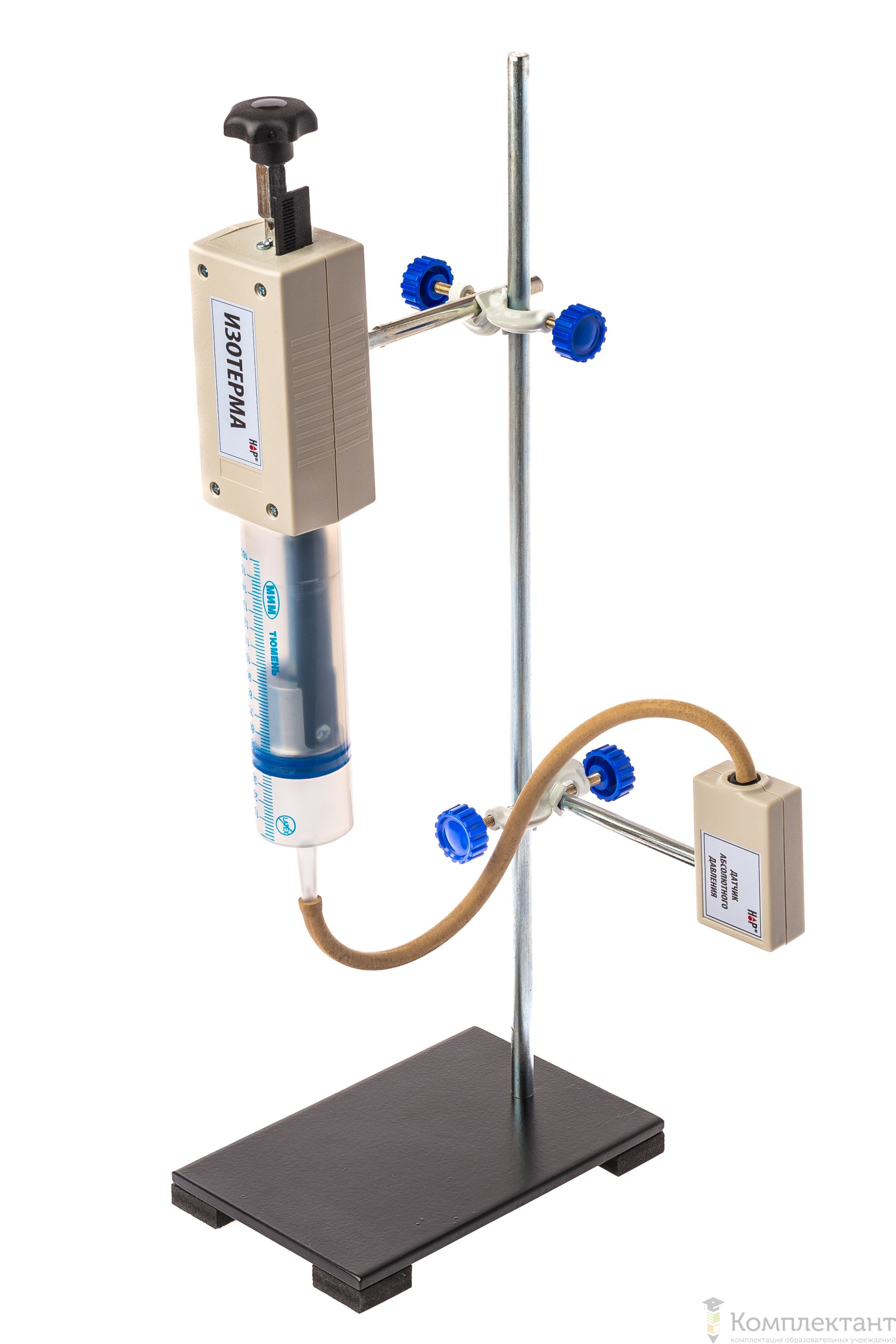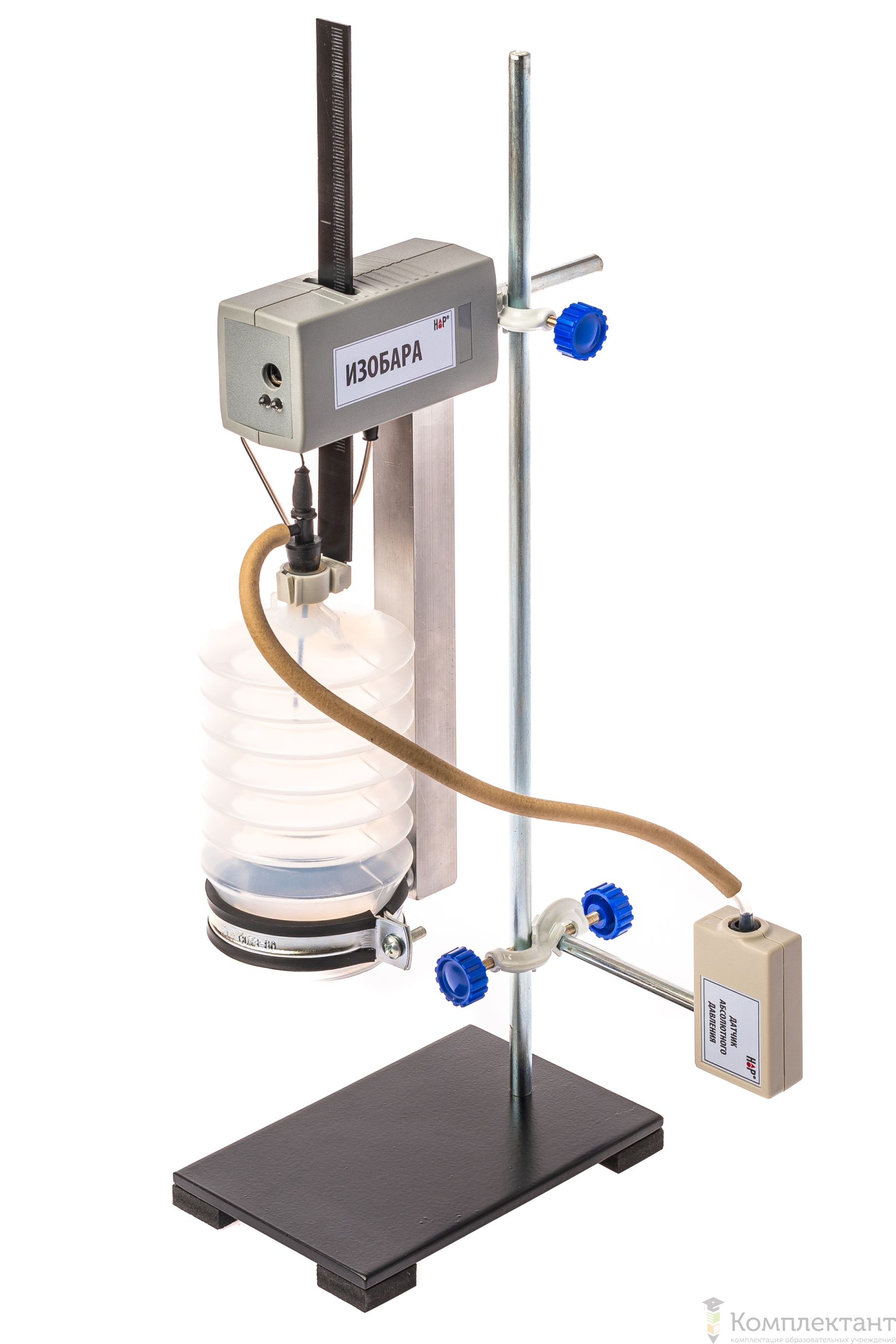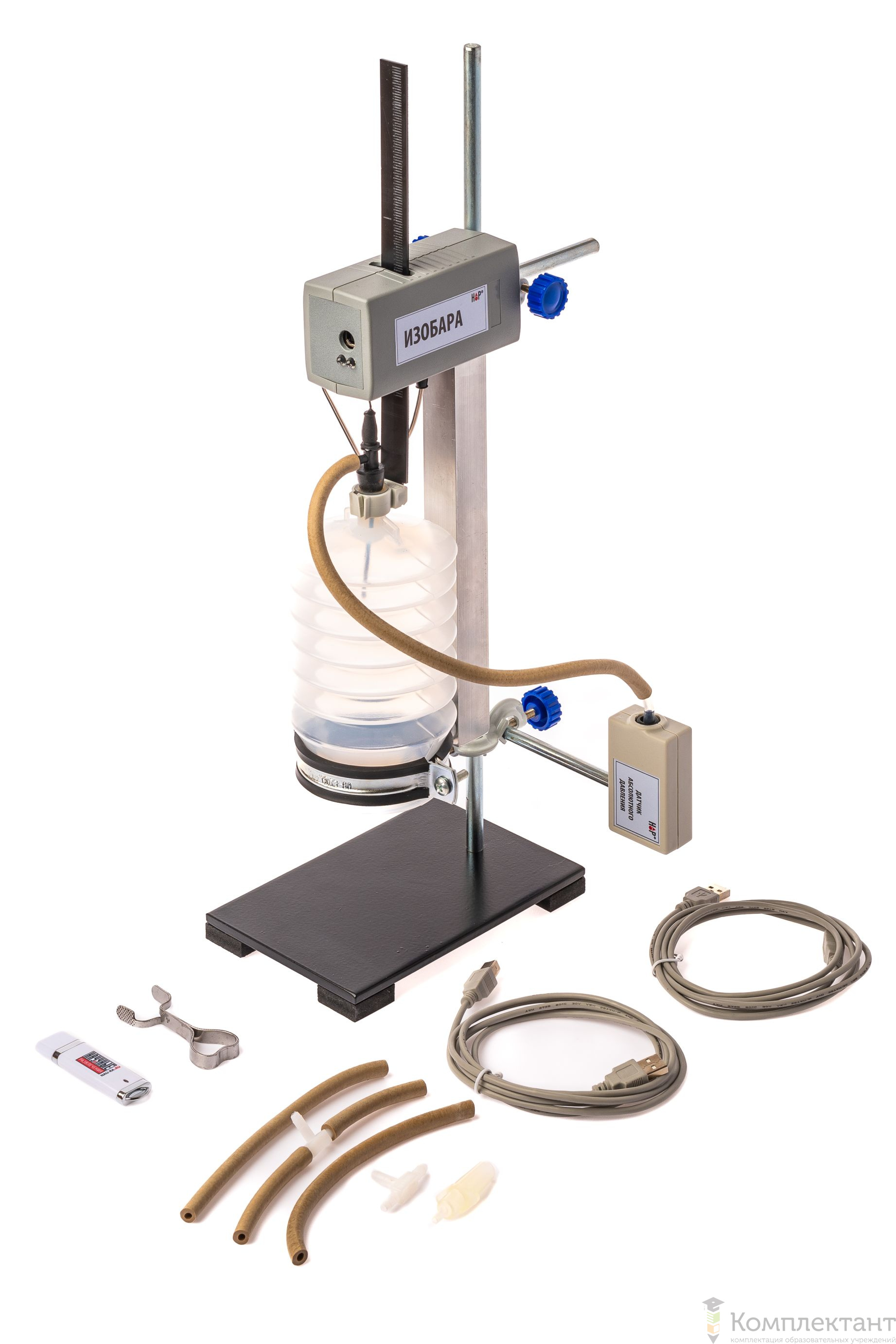 В состав набора входят три установки для осуществления изотермического, изобарного и изохорного процессов, которые имеют встроенные датчики объема и температуры, позволяющие регистрировать параметры газа в процессе изменения его состояния. Конструкция установок обеспечивает постоянство одного из параметров газа при варьировании двух других параметров. Для измерения давления газа применяется датчик абсолютного давления.